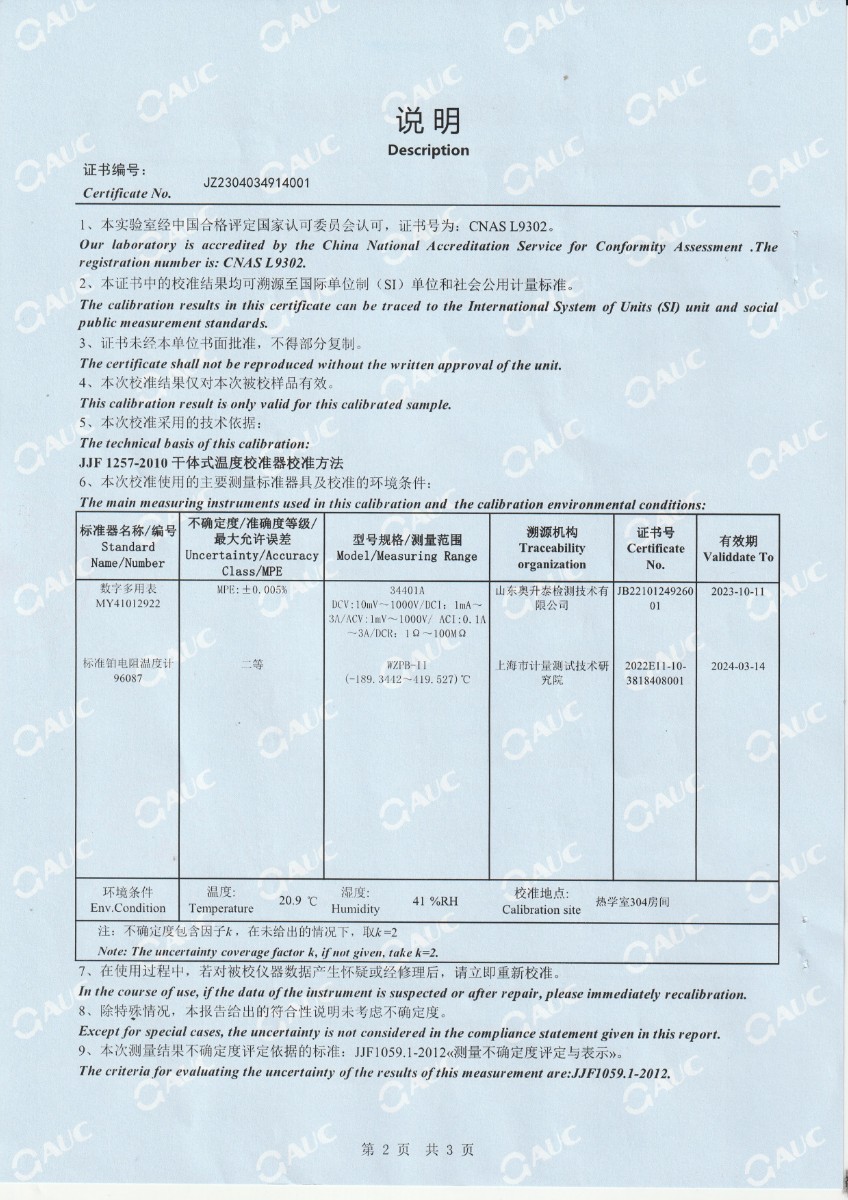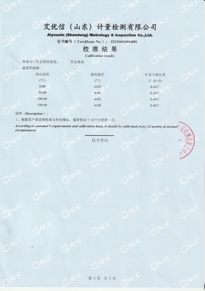 上一條:中財鋰膜(南京)有限公司 中溫干體爐 校準證書下一條:高精度制冷恒溫槽(-80~100℃)校準證書