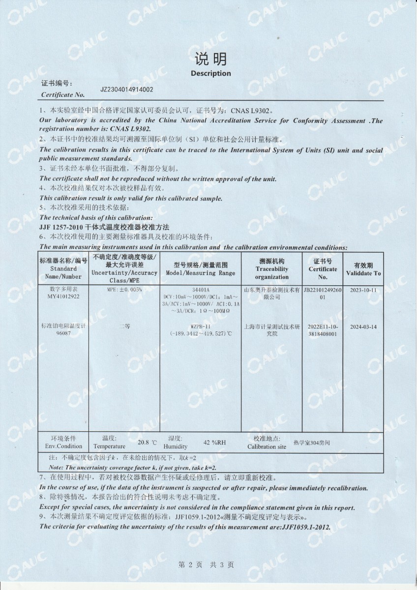 | 上一條:沈陽(yáng)吉地安風(fēng)電科技有限公司 干體溫度校驗(yàn)爐 校準(zhǔn)證書(shū)(1) | 下一條:高精度制冷恒溫槽(-80~100℃)校準(zhǔn)證書(shū) |