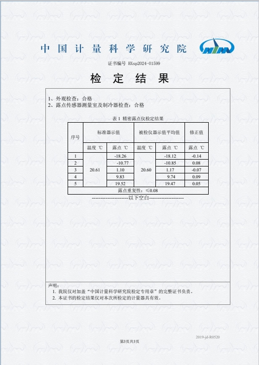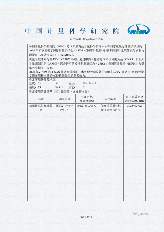 冷鏡式露點(diǎn)儀(-20-95℃)檢定證書 2024-6-17 本文被閱讀 7328 次