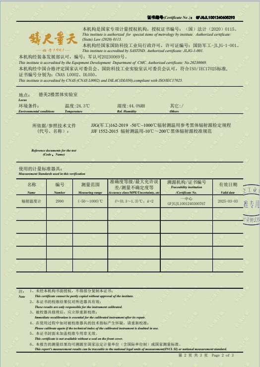 | 上一條:黑體輻射源(50-700℃)304所校準(zhǔn)證書(shū) | 下一條:高精度制冷恒溫槽(-80~100℃)校準(zhǔn)證書(shū) |
