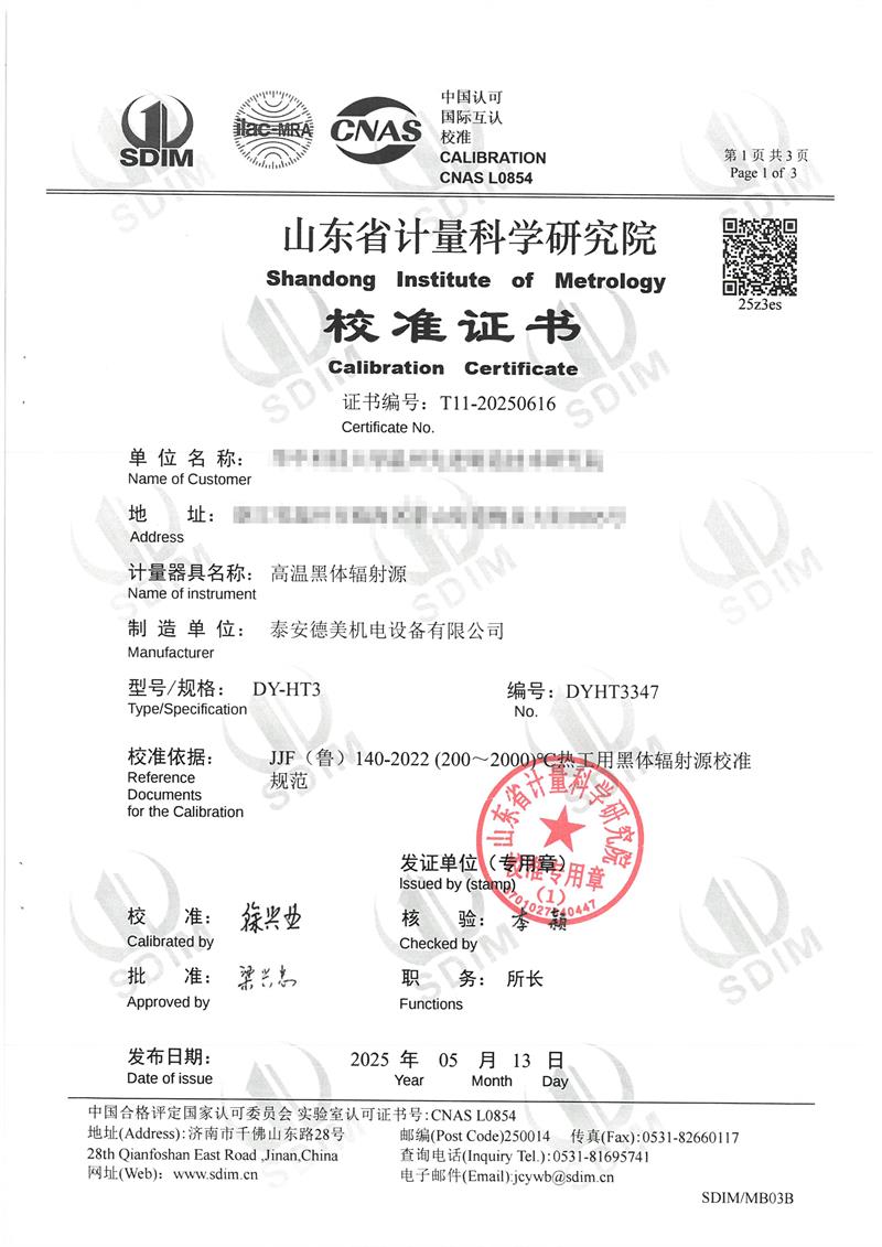 | 上一條:黑體爐(50~400℃)校準(zhǔn)證書 | 下一條:高精度制冷恒溫槽(-80~100℃)校準(zhǔn)證書 |