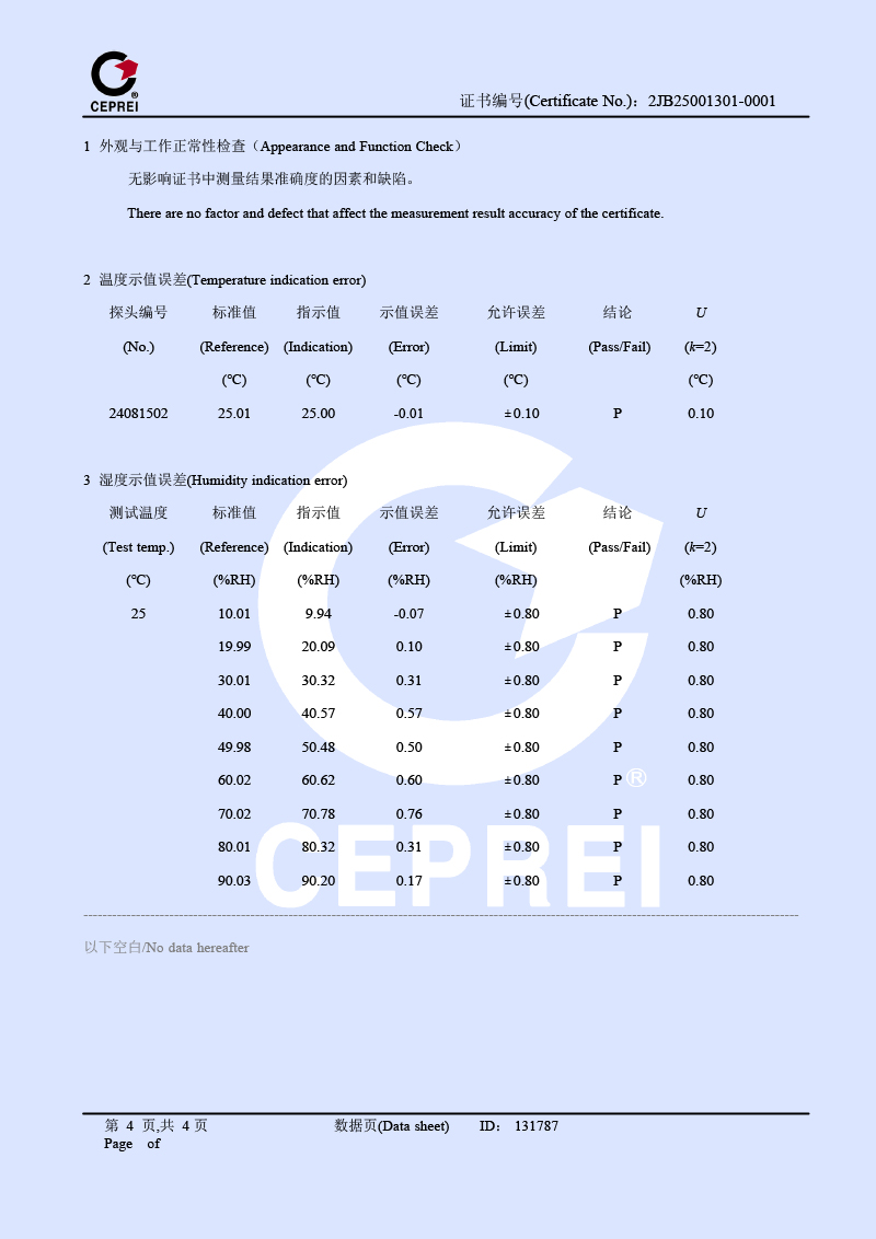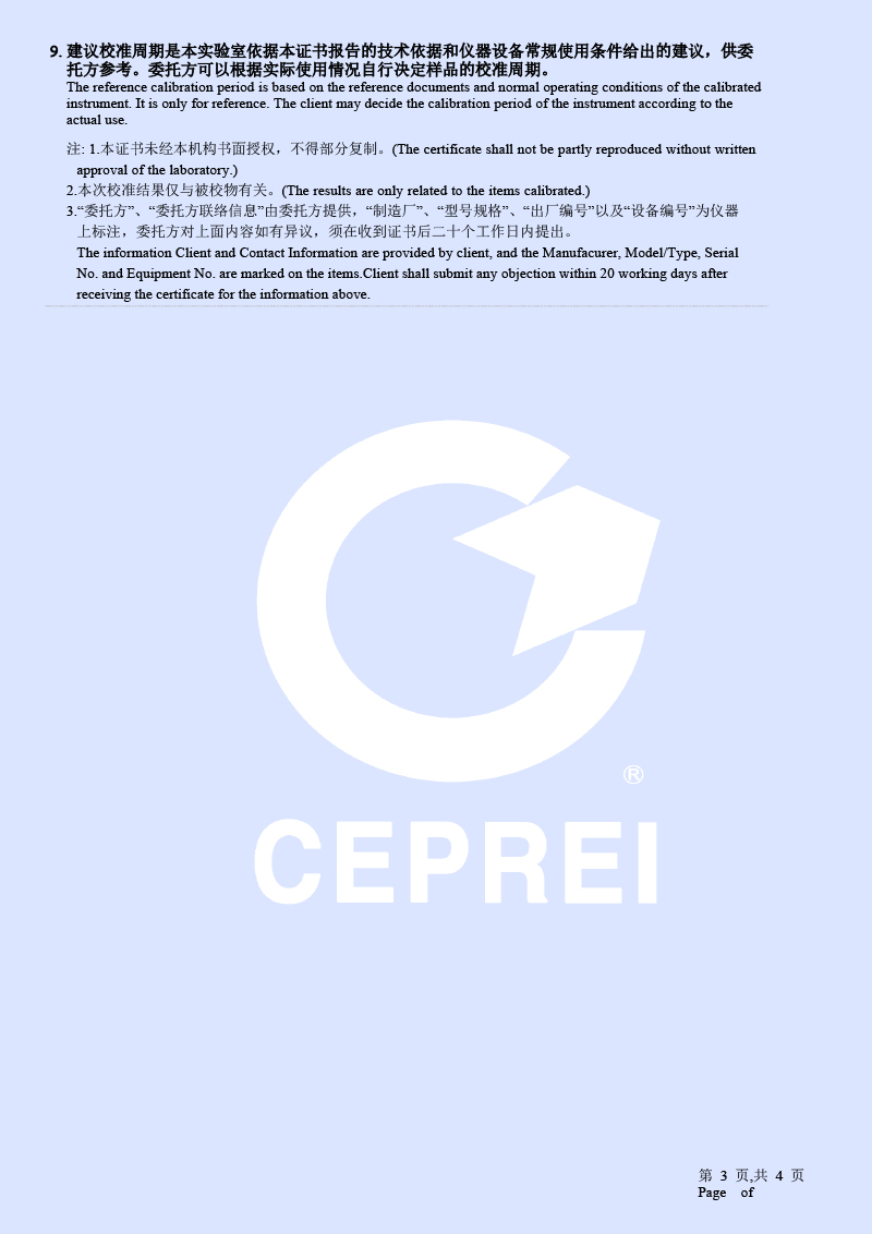 | 上一條:中溫面源黑體爐(室溫+5-500℃)校準(zhǔn)證書 | 下一條:高精度制冷恒溫槽(-80~100℃)校準(zhǔn)證書 |