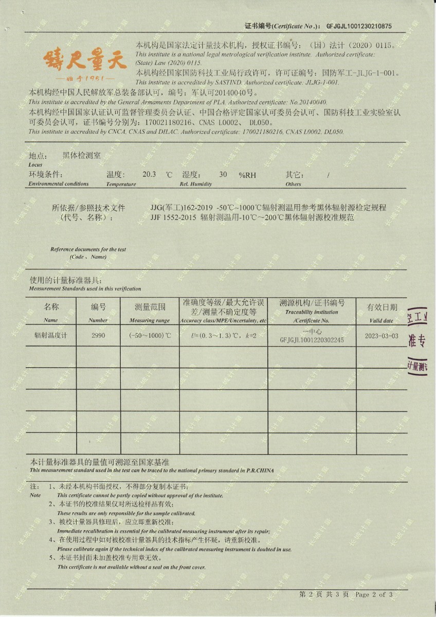 博納檢測認證有限公司 低溫黑體輻射源 校準證書 2023-2-25 本文被閱讀 11885 次