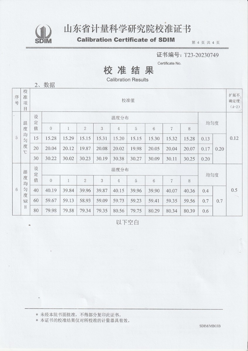| 上一條:越南晶科能源實(shí)業(yè)有限責(zé)任公司 溫濕度標(biāo)準(zhǔn)箱 校準(zhǔn)證書 | 下一條:高精度制冷恒溫槽(-80~100℃)校準(zhǔn)證書 |