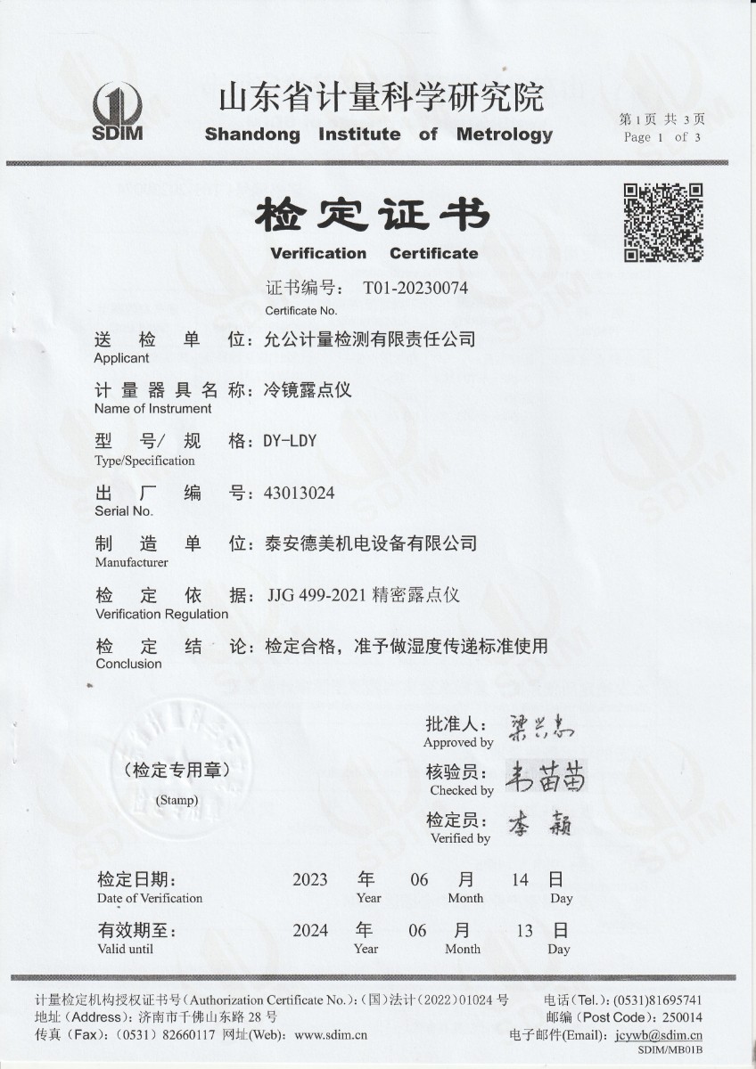 | 上一條:允公計量檢測有限責(zé)任公司-冷鏡露點儀校準(zhǔn)證書 | 下一條:高精度制冷恒溫槽(-80~100℃)校準(zhǔn)證書 |