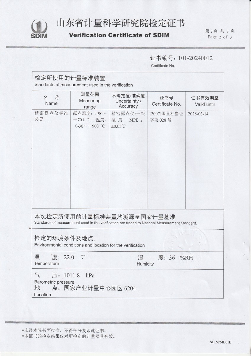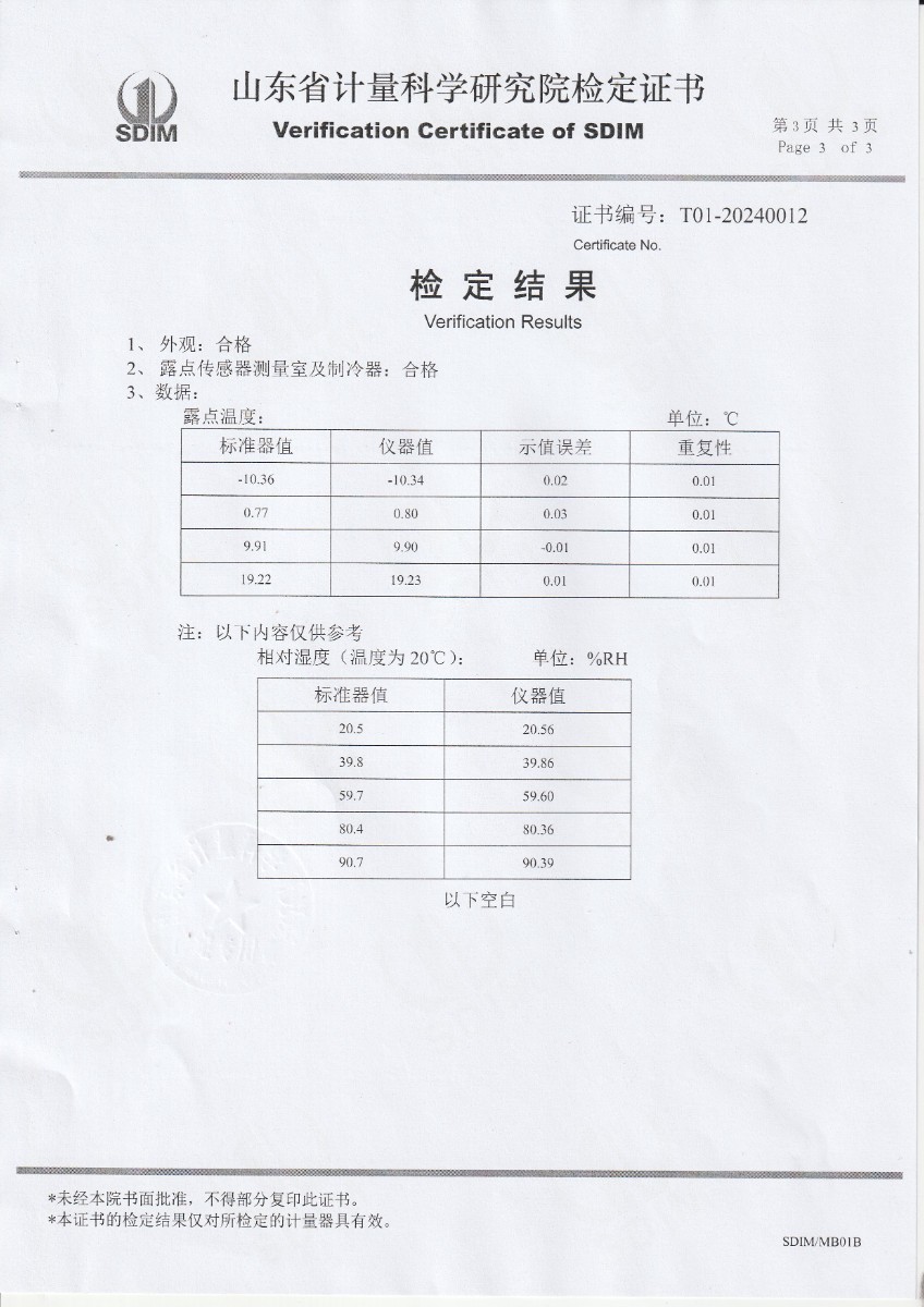 冷鏡式露點儀檢定證書 2024-1-31 本文被閱讀 9408 次