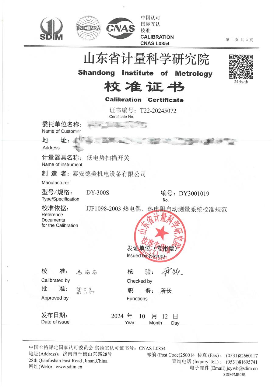 | 上一條:DY-HT2M-70小尺寸高精度面源黑體爐(輻射面70mm) | 下一條:高精度制冷恒溫槽(-80~100℃)校準(zhǔn)證書 |