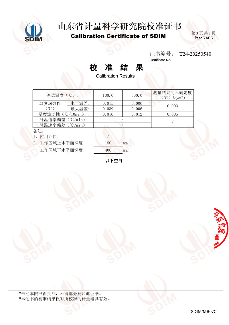 高精度熱管恒溫槽(50-300℃)校準(zhǔn)證書