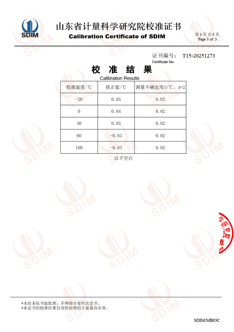 | 上一條:高精度熱管恒溫槽(50-300℃)校準(zhǔn)證書(shū) | 下一條:高精度制冷恒溫槽(-80~100℃)校準(zhǔn)證書(shū) |