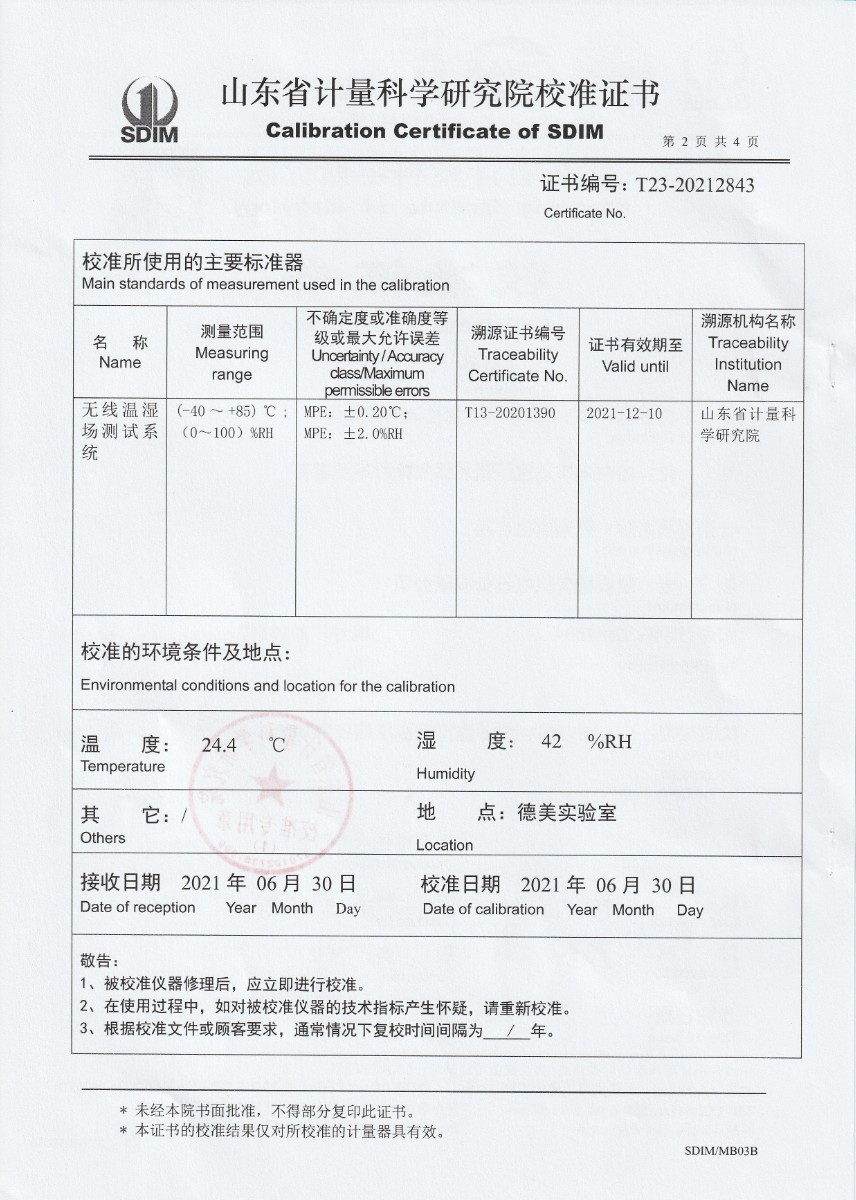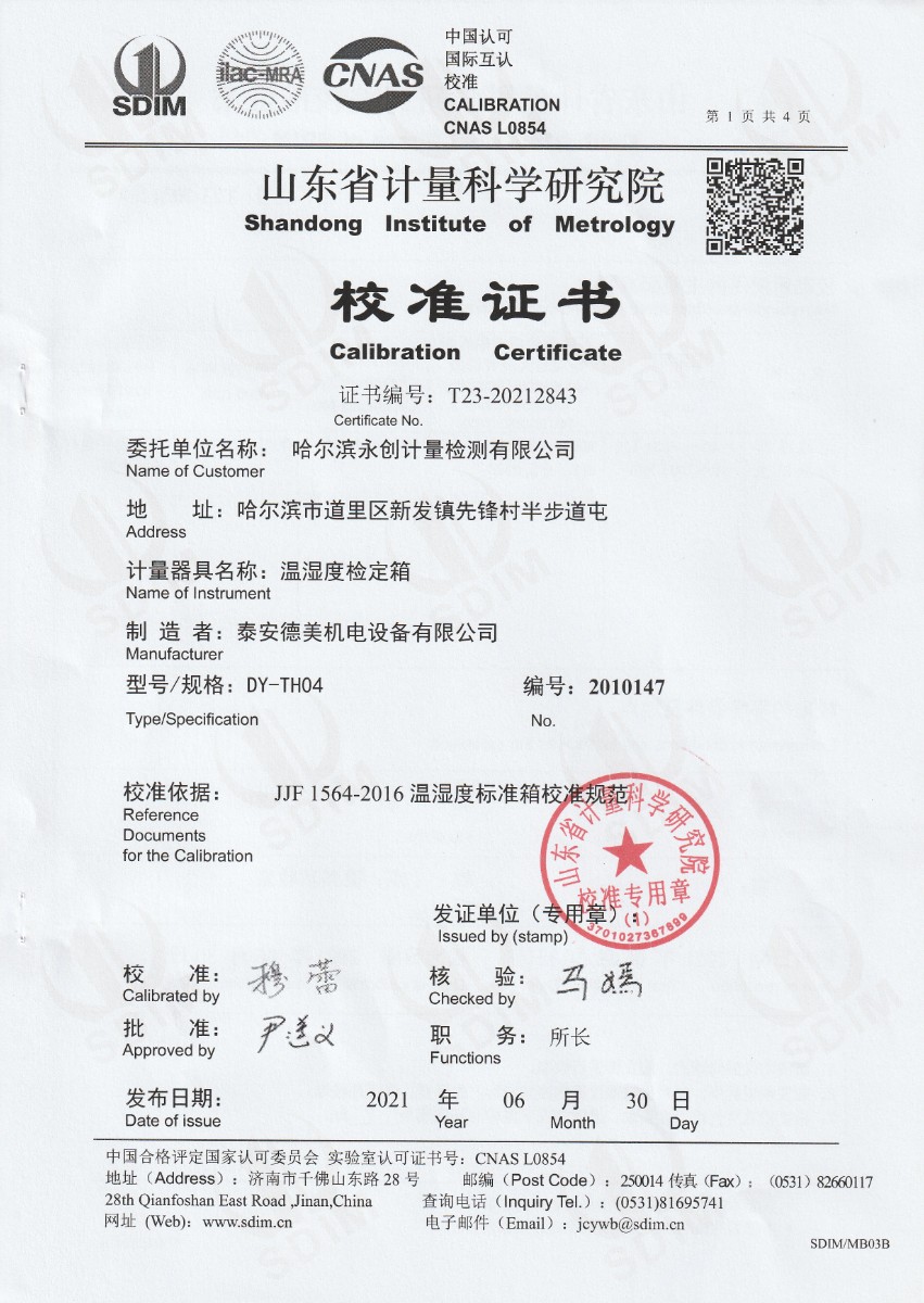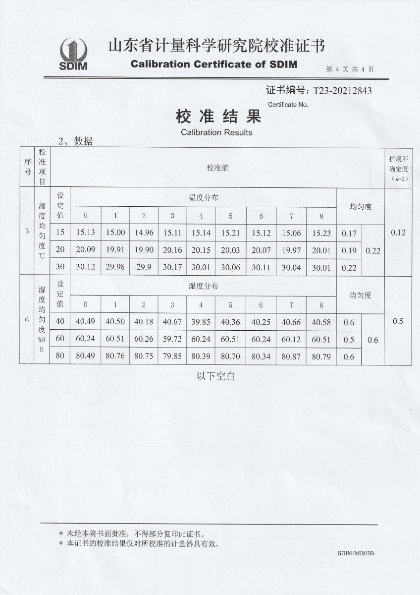 | 上一條:廣東省連平縣質(zhì)量技術(shù)監(jiān)督檢測所-溫濕度檢定箱 | 下一條:中溫面源黑體爐-校準(zhǔn)證書 |
