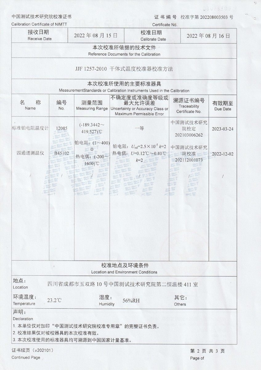 | 上一條:東營市安全工器具質(zhì)量檢測有限公司-黑體輻射源DY-HT1-Y | 下一條:中溫面源黑體爐-校準(zhǔn)證書 |