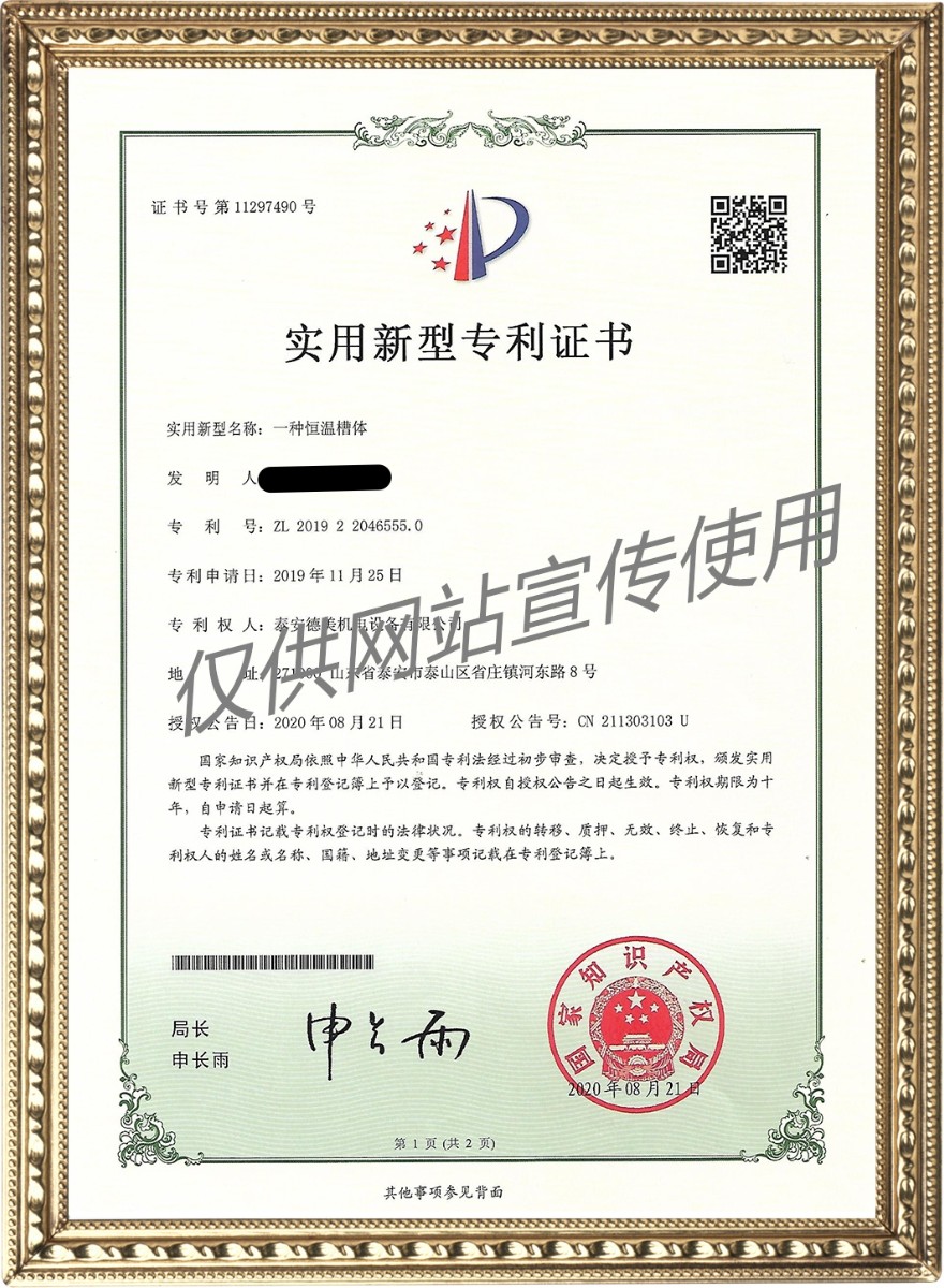 一種恒溫槽體——實用新型專利證書