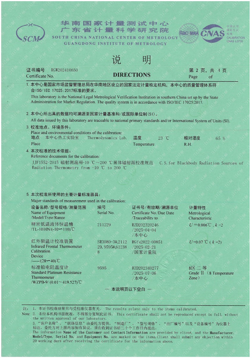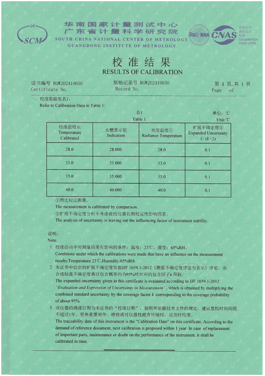 額溫空腔(黑體輻射源)校準證書 2024-5-27 本文被閱讀 6803 次