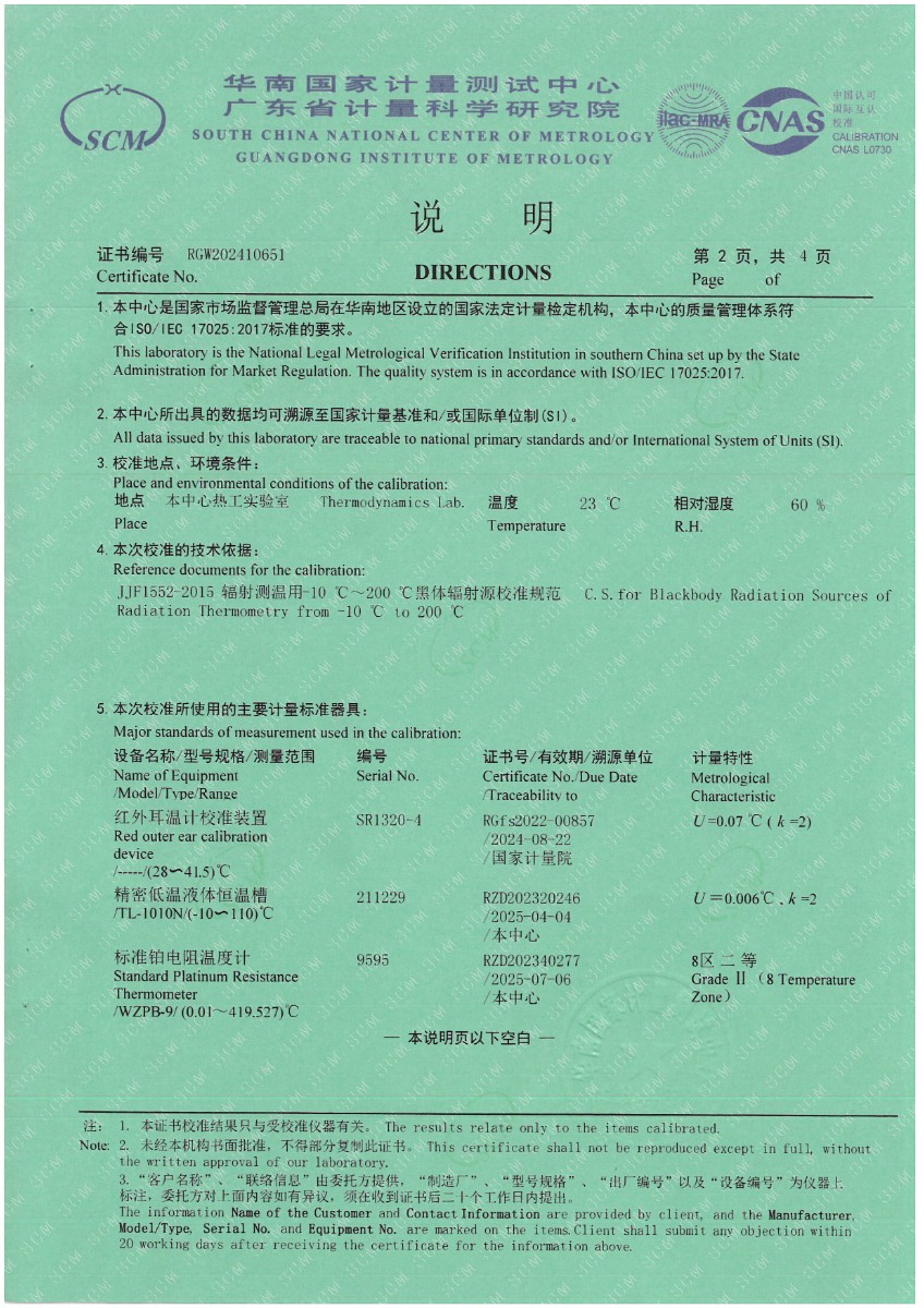 耳溫空腔(黑體輻射源)校準證書 2024-5-27 本文被閱讀 6980 次
