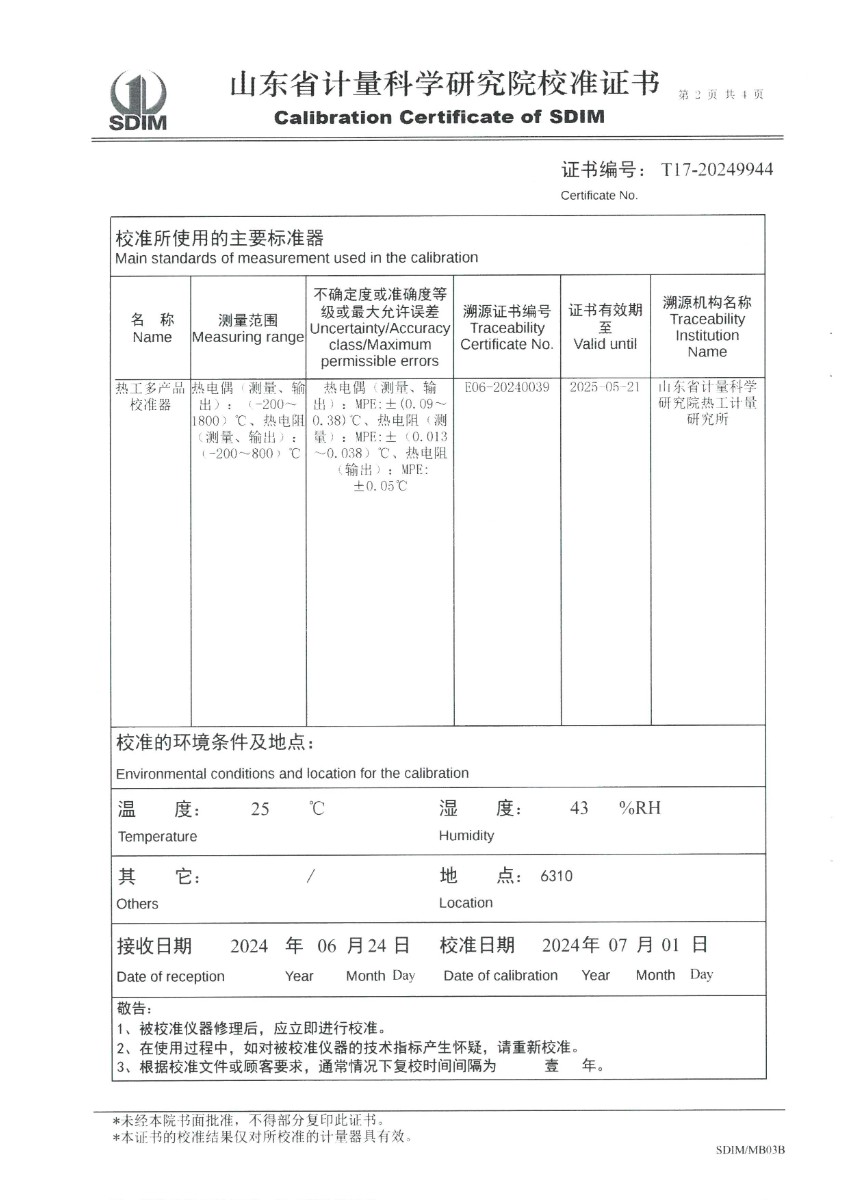 | 上一條:水三相點(diǎn)瓶?jī)鲋票4嫜b置(-20~95℃)校準(zhǔn)證書 | 下一條:中溫面源黑體爐-校準(zhǔn)證書 |
