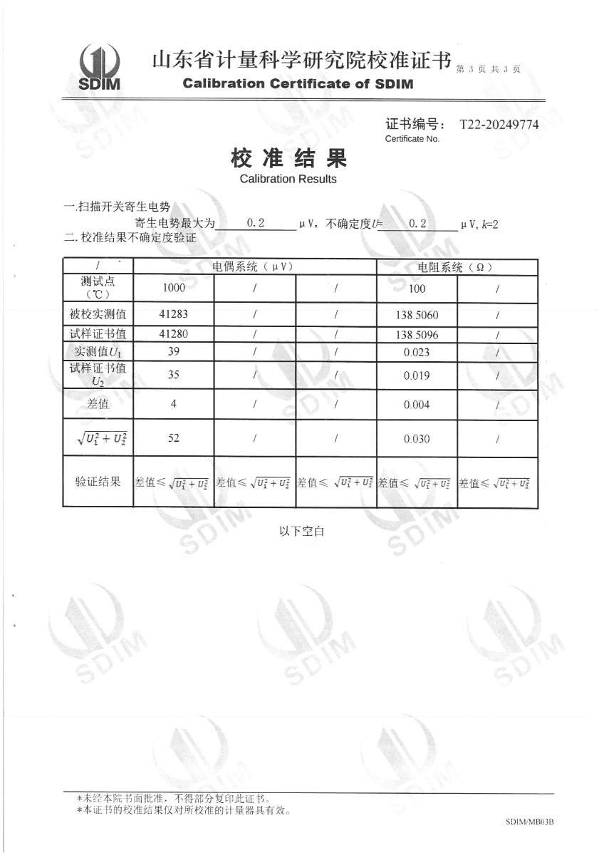 | 上一條:中溫干體爐296(50~650℃)校準(zhǔn)證書(shū) | 下一條:中溫面源黑體爐-校準(zhǔn)證書(shū) |