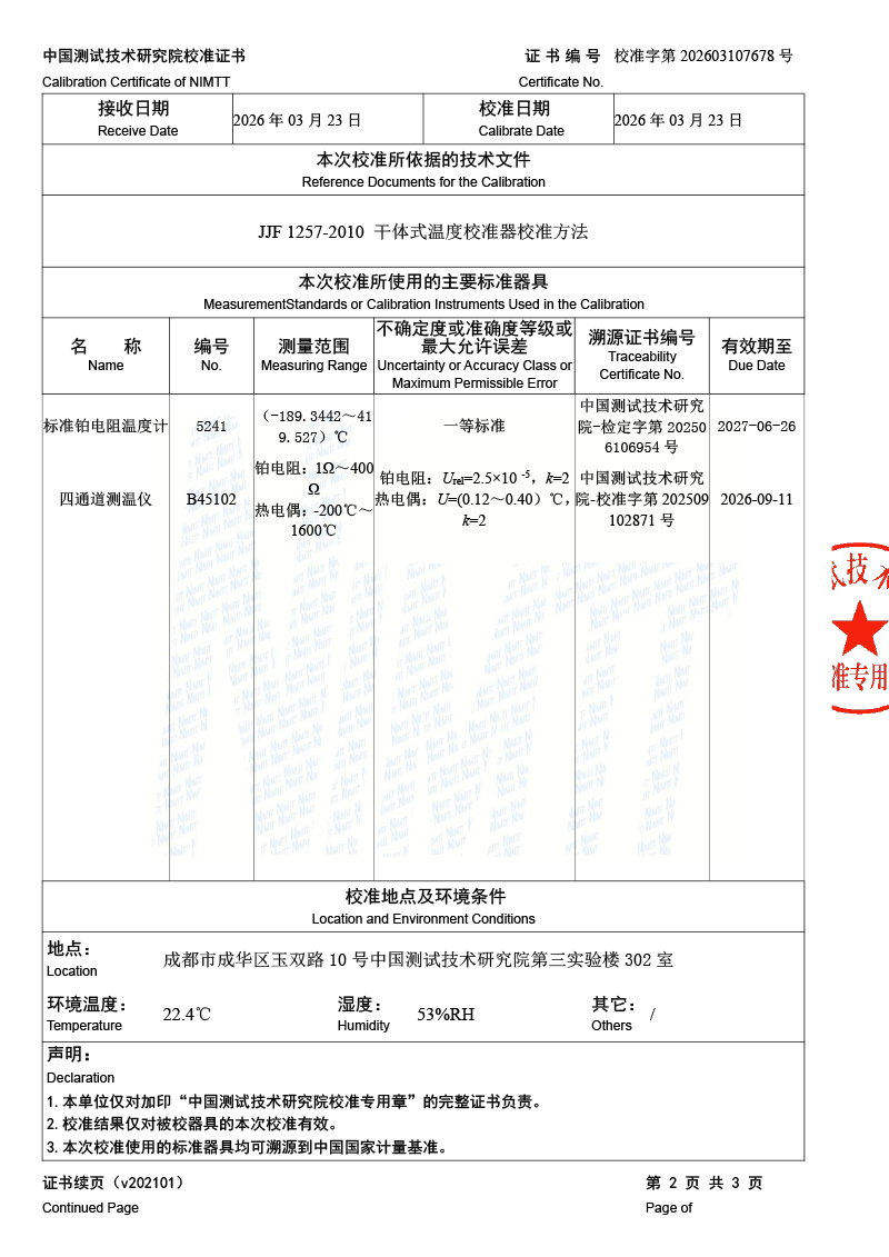 干體爐-校準證書 2026-3-25 本文被閱讀 404 次