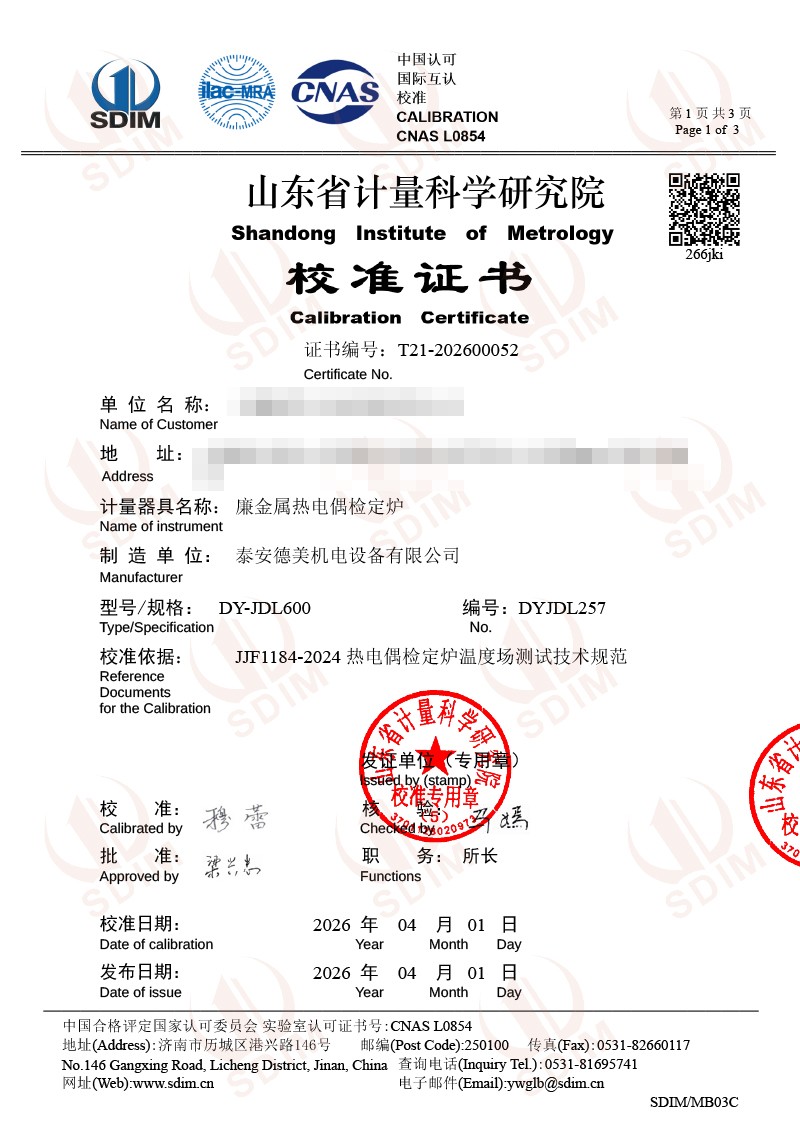 廉金屬熱電偶檢定爐-校準(zhǔn)證書 2026-4-11 本文被閱讀 152 次