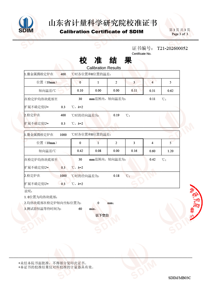廉金屬熱電偶檢定爐-校準(zhǔn)證書
