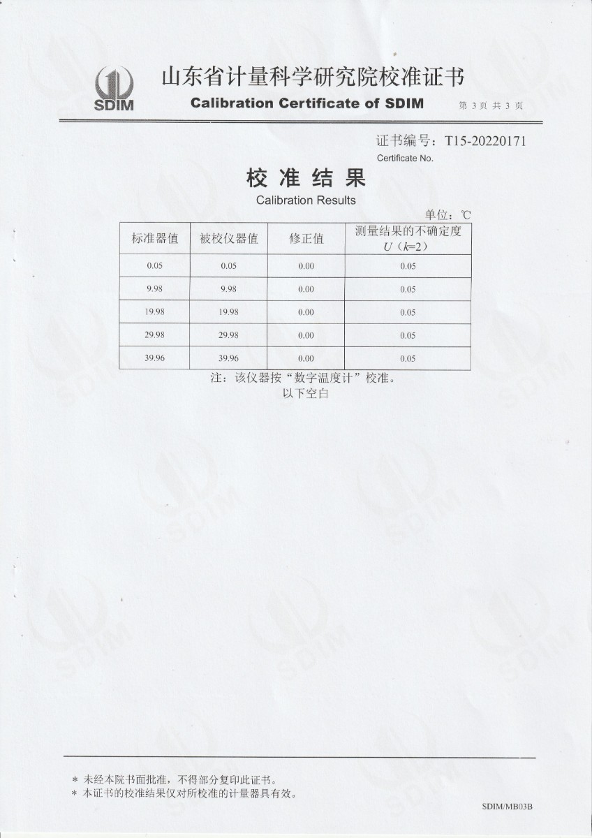 | 上一條:西安天牧儀器儀表有限公司 精密露點(diǎn)儀 檢定證書 | 下一條:高精度制冷恒溫槽(-80~100℃)校準(zhǔn)證書 |