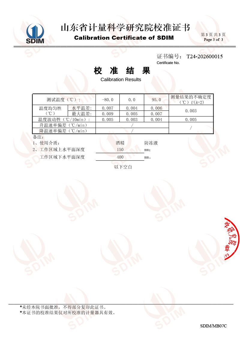 | 上一條:高精度制冷恒溫槽(-30~95℃)校準(zhǔn)證書 | 下一條:中溫面源黑體爐-校準(zhǔn)證書 |