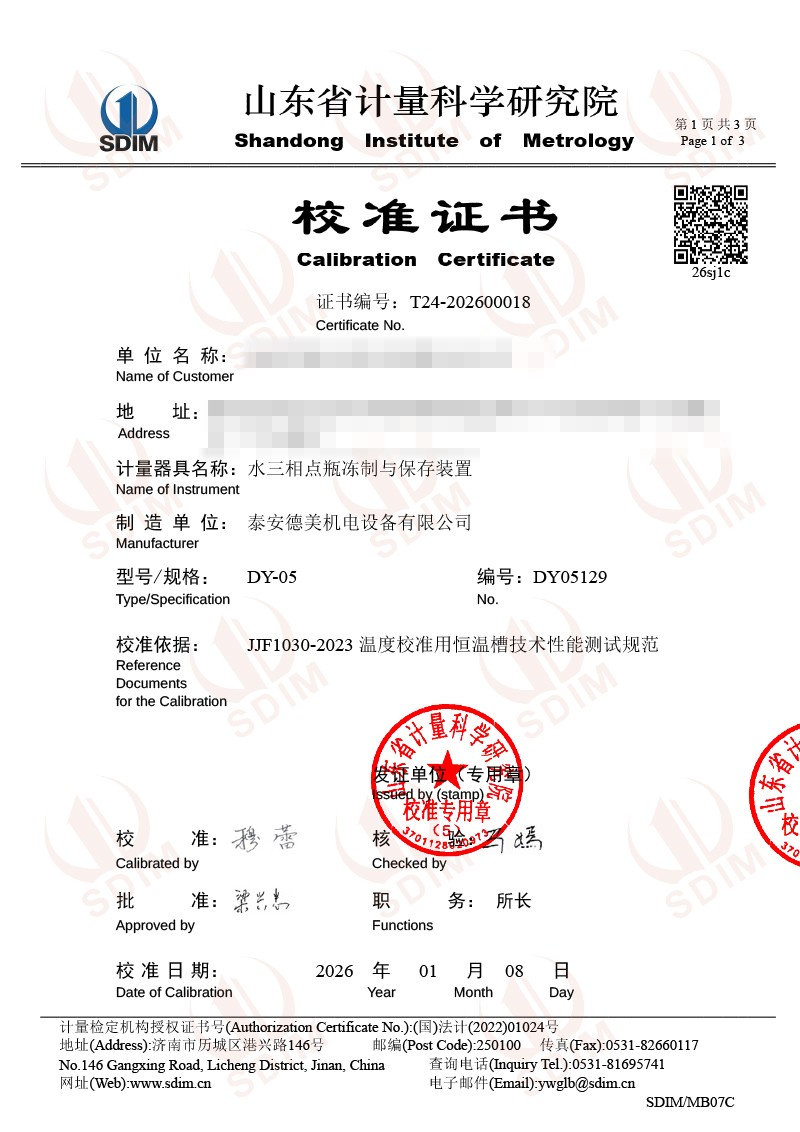 水三相點(diǎn)瓶?jī)鲋婆c保存裝置校準(zhǔn)證書(shū) 2026-1-13 本文被閱讀 1593 次
