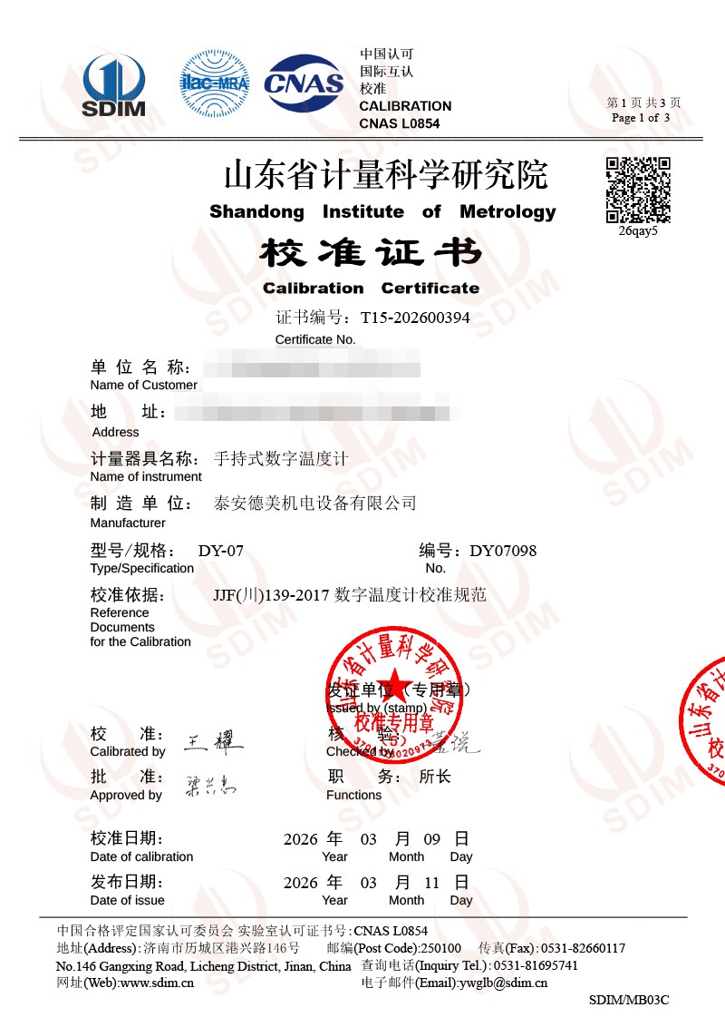 數字溫度計-校準證書 2026-3-11 本文被閱讀 1198 次
