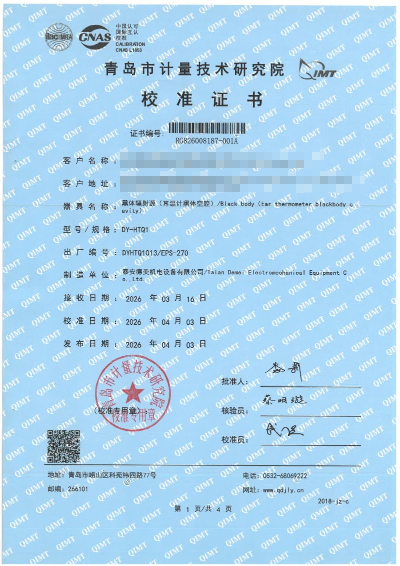 耳溫空腔-校準(zhǔn)證書 2026-4-20 本文被閱讀 10 次