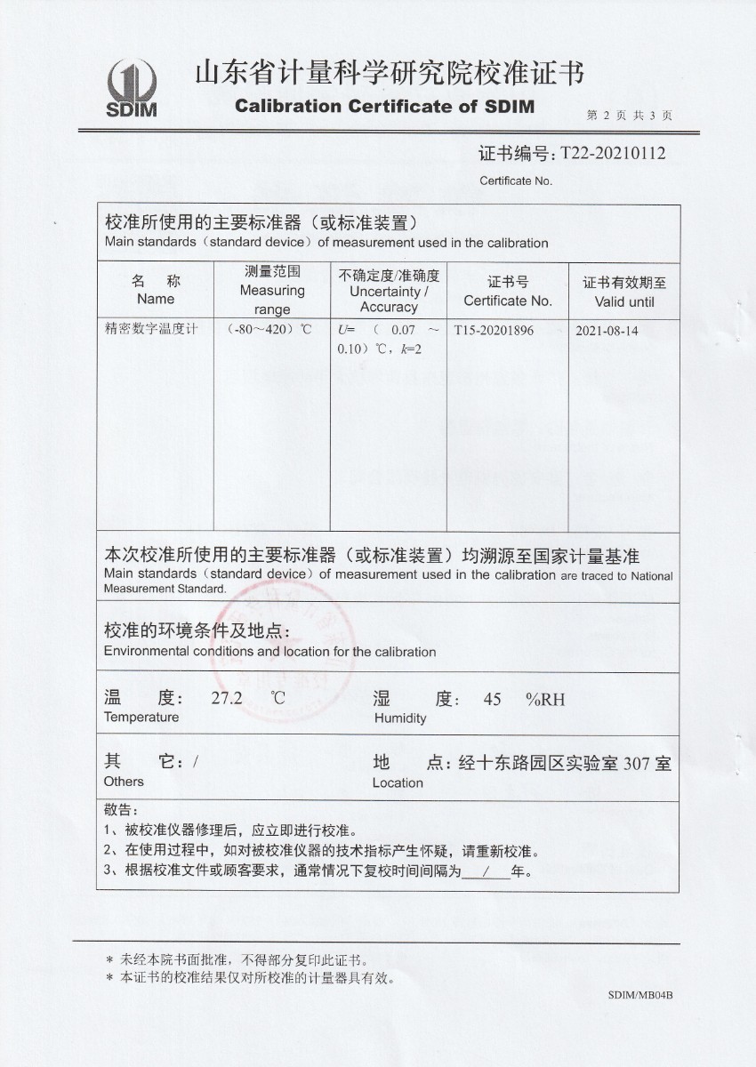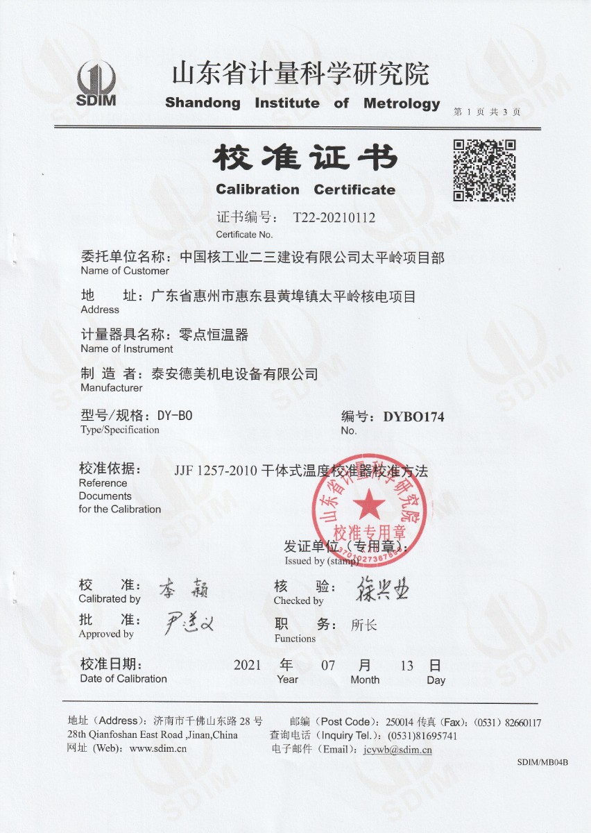 | 上一條:中國核工業(yè)二三建設有限公司太平嶺項目部-標準鉑銠10-鉑熱電偶 | 下一條:高精度制冷恒溫槽(-80~100℃)校準證書 |