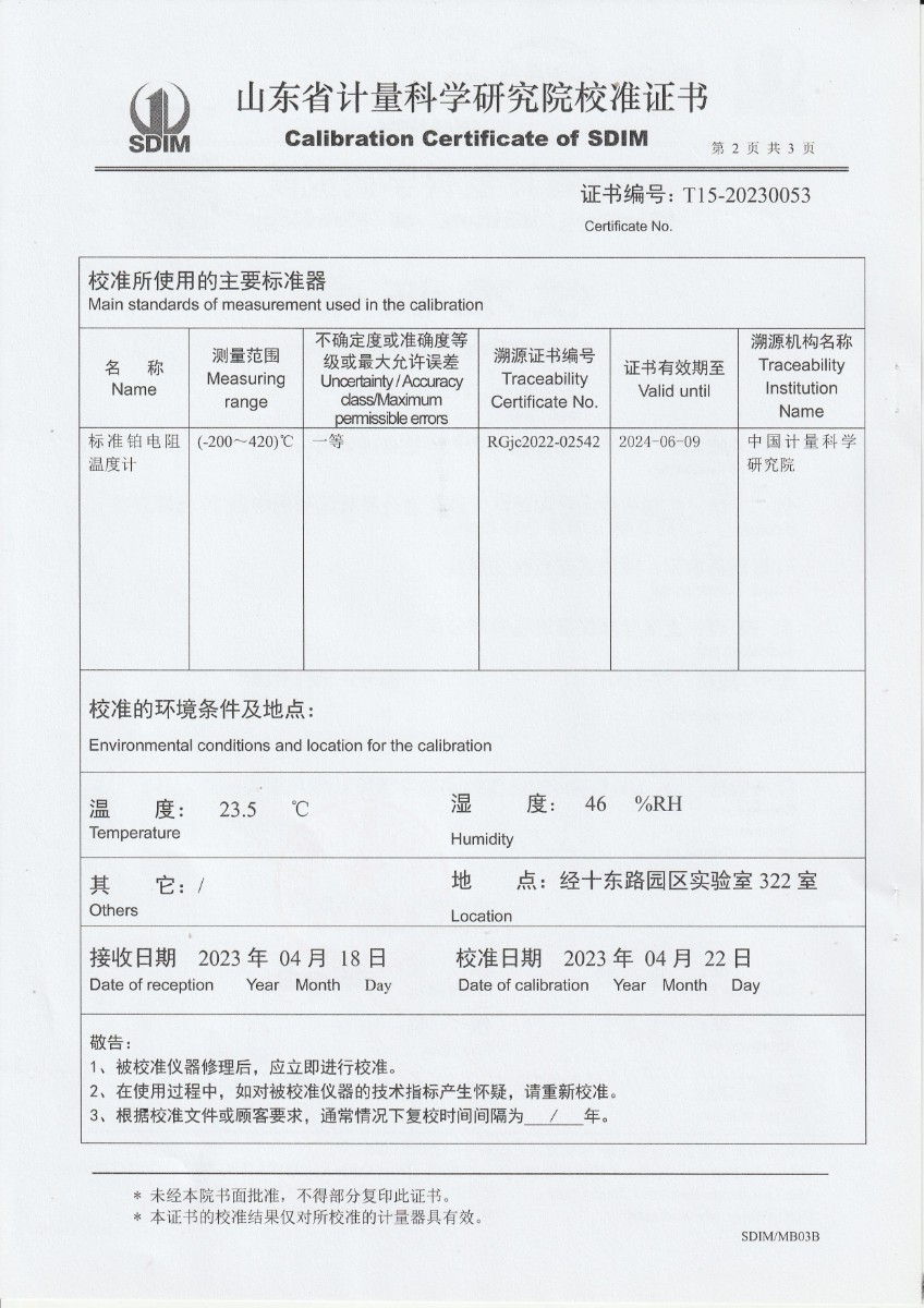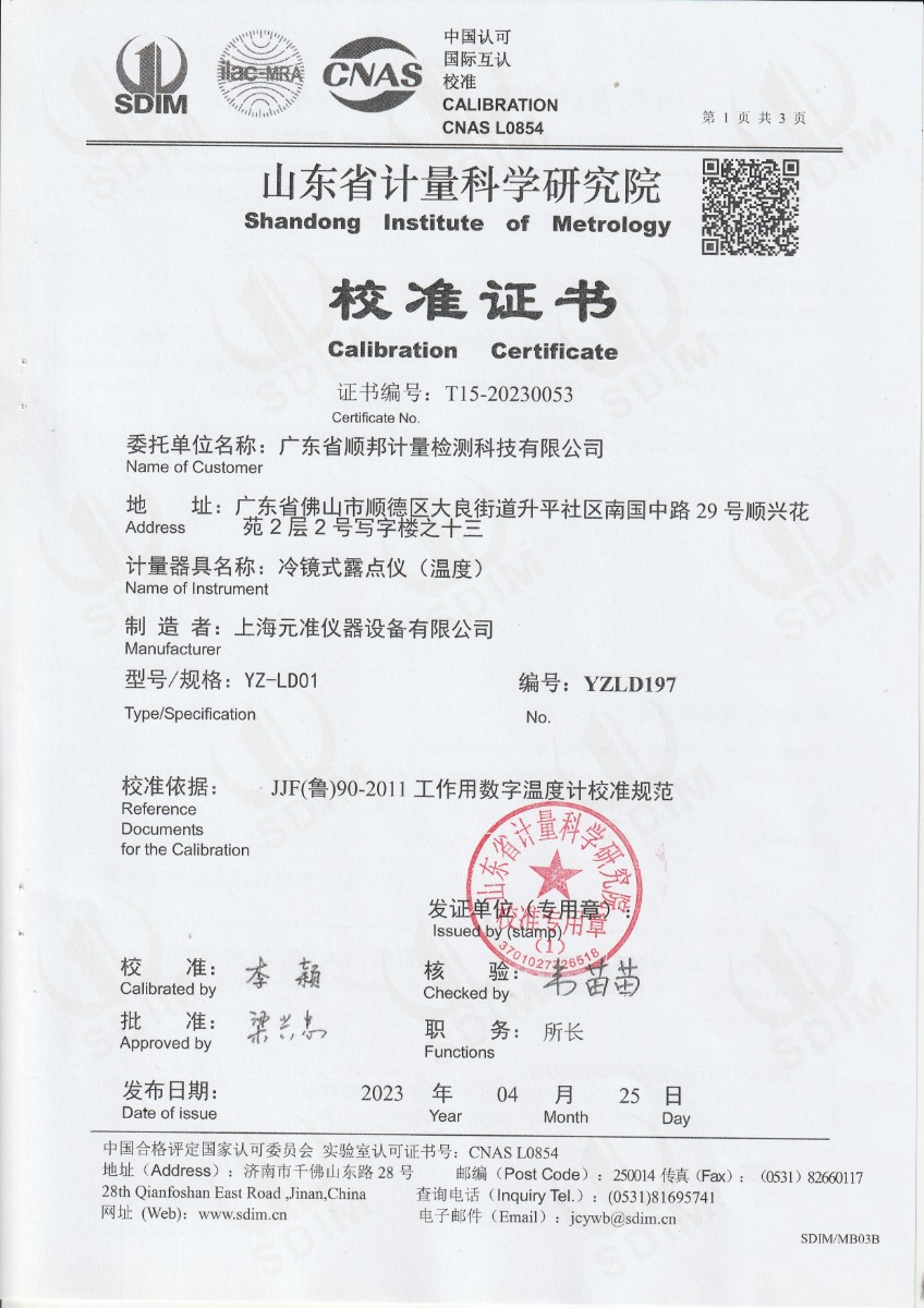| 上一條:廣東省順邦計量檢測科技有限公司 冷鏡式露點儀 檢定證書 | 下一條:中溫面源黑體爐-校準證書 |