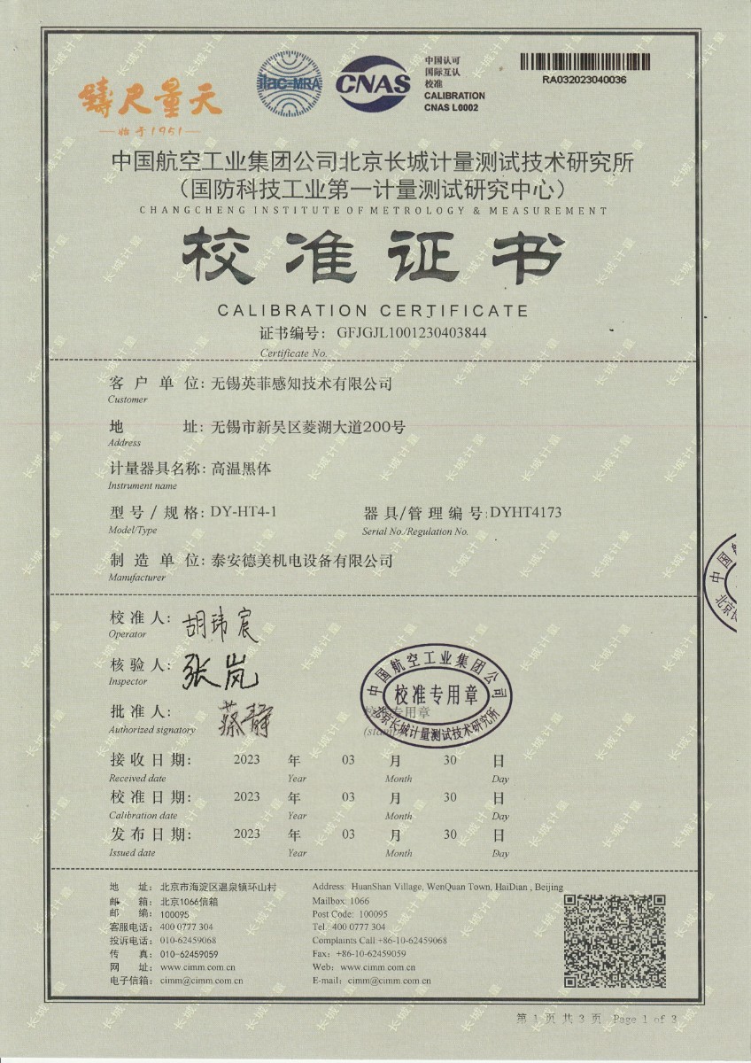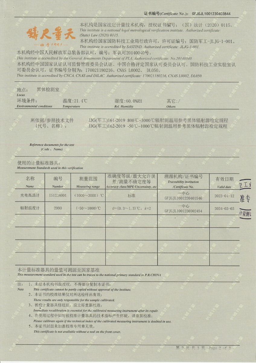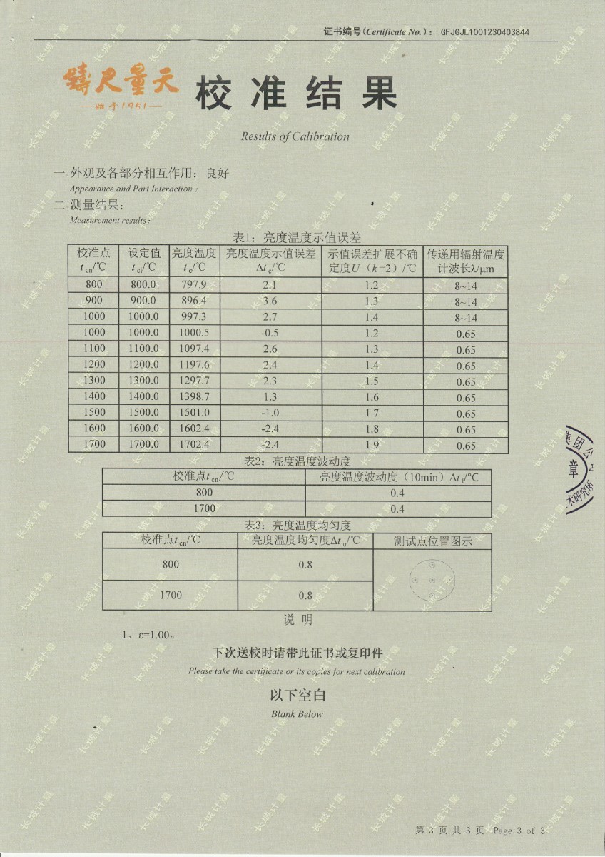 | 上一條:晶科能源(義烏)有限公司 溫濕度檢定箱 校準(zhǔn)證書 | 下一條:中溫面源黑體爐-校準(zhǔn)證書 |