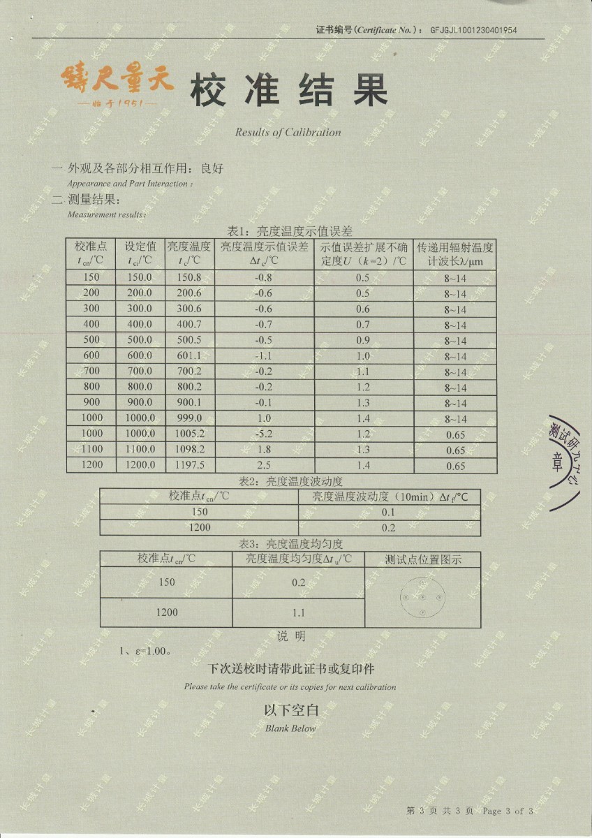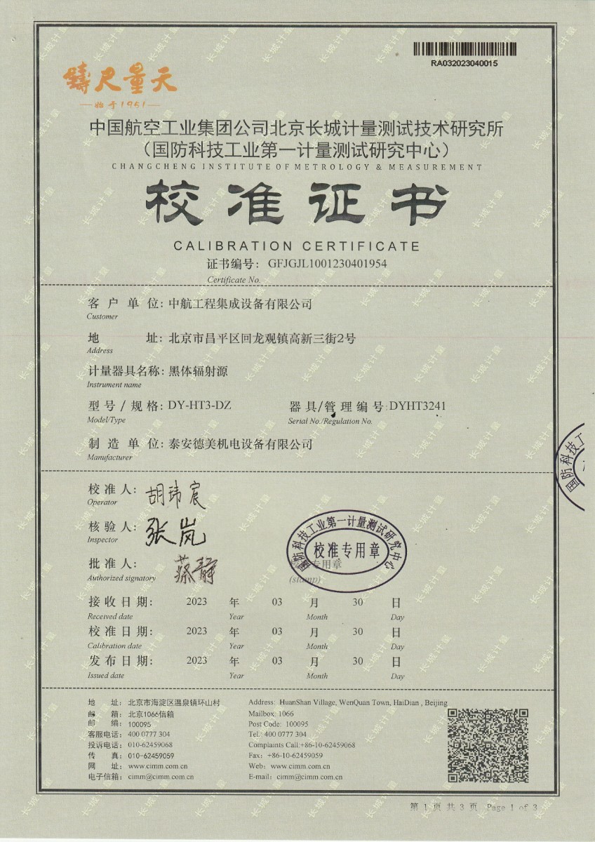 | 上一條:中航工程集成設(shè)備有限公司 黑體輻射源 校準(zhǔn)證書(shū) (1) | 下一條:高精度制冷恒溫槽(-80~100℃)校準(zhǔn)證書(shū) |