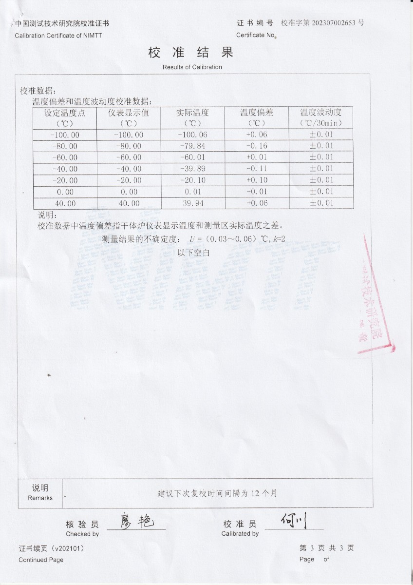 | 上一條:宜昌楚能新能源創(chuàng)新科技有限公司-黑體輻射源 | 下一條:高精度制冷恒溫槽(-80~100℃)校準(zhǔn)證書(shū) |