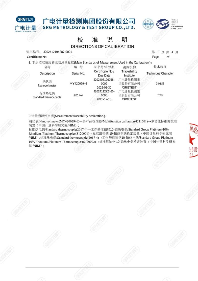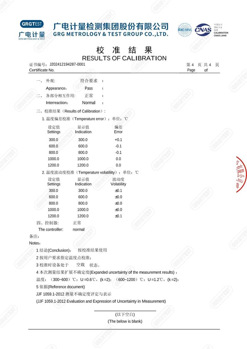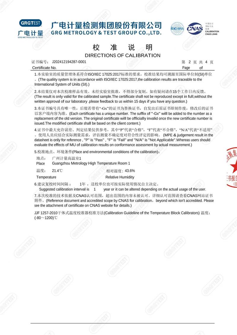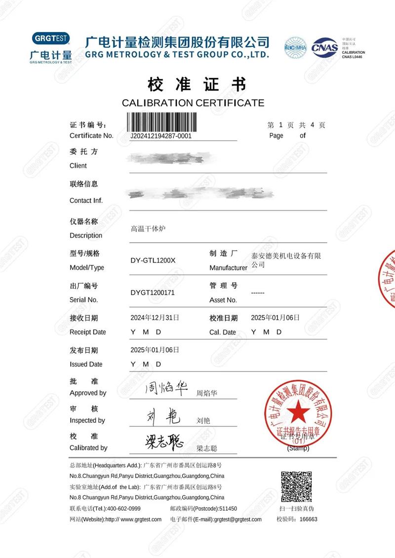 高溫干體爐(300-1200℃)校準證書 2025-1-13 本文被閱讀 6862 次