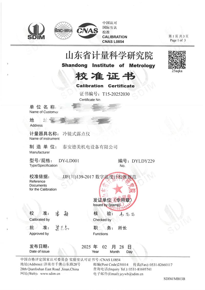 露點儀檢定、校準(zhǔn)證書 2025-3-8 本文被閱讀 4364 次