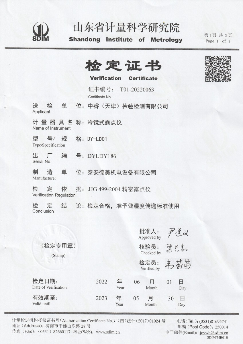 | 上一條:中睿(天津)檢驗檢測有限公司-冷鏡式露點儀校準(zhǔn)證書 | 下一條:中溫面源黑體爐-校準(zhǔn)證書 |