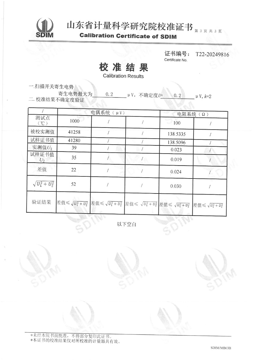 | 上一條:廉金屬熱電偶檢定爐(300~1200℃)校準(zhǔn)證書(shū) | 下一條:中溫面源黑體爐-校準(zhǔn)證書(shū) |