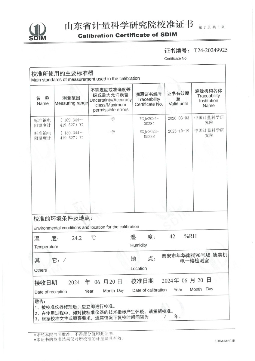 制冷恒溫槽(-80~95℃)校準證書 2024-6-26 本文被閱讀 6669 次
