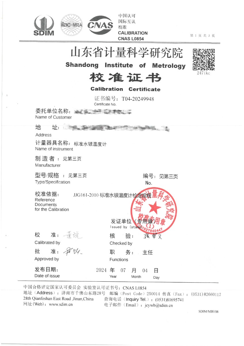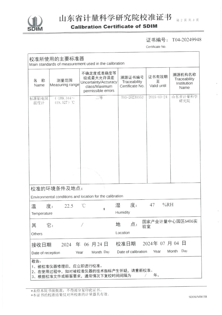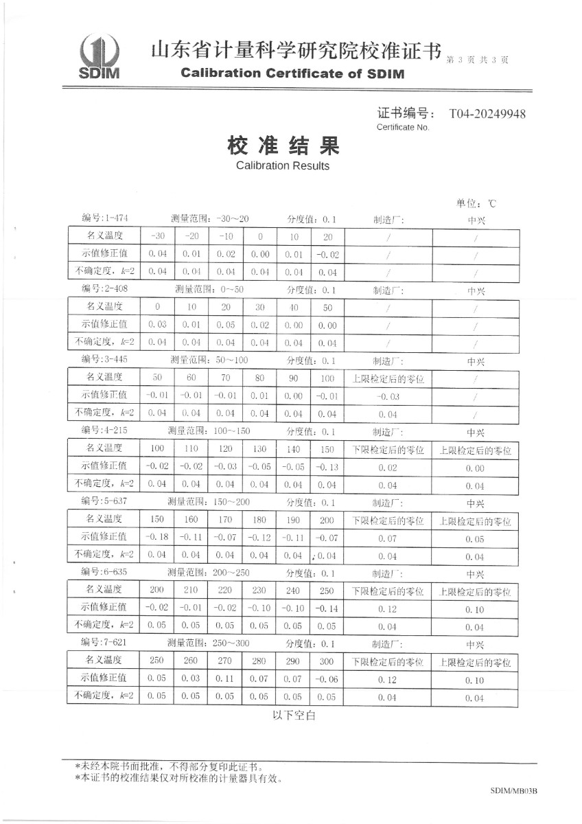 | 上一條:溫濕度檢定箱(-20~70℃)校準(zhǔn)證書 | 下一條:中溫面源黑體爐-校準(zhǔn)證書 |