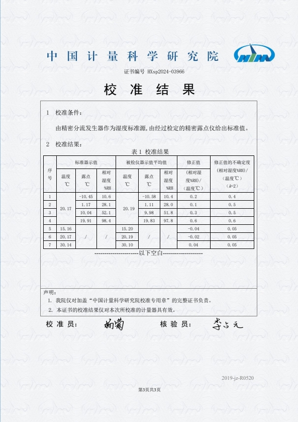 | 上一條:腔式黑體(50~500℃)校準(zhǔn)證書 | 下一條:高精度制冷恒溫槽(-80~100℃)校準(zhǔn)證書 |