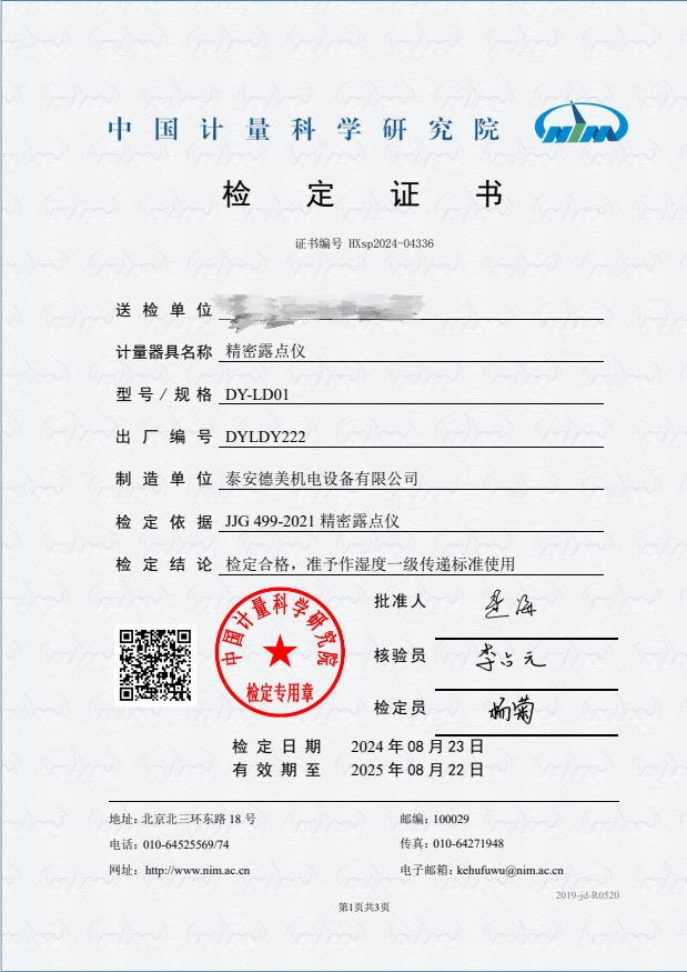 露點儀檢定證書 2024-9-3 本文被閱讀 6517 次