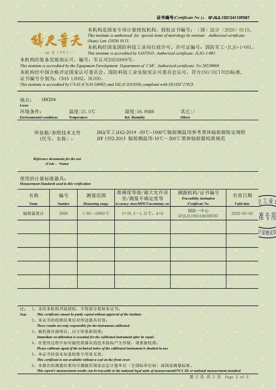 中溫干體爐(50-700℃)校準證書 2024-11-27 本文被閱讀 7847 次