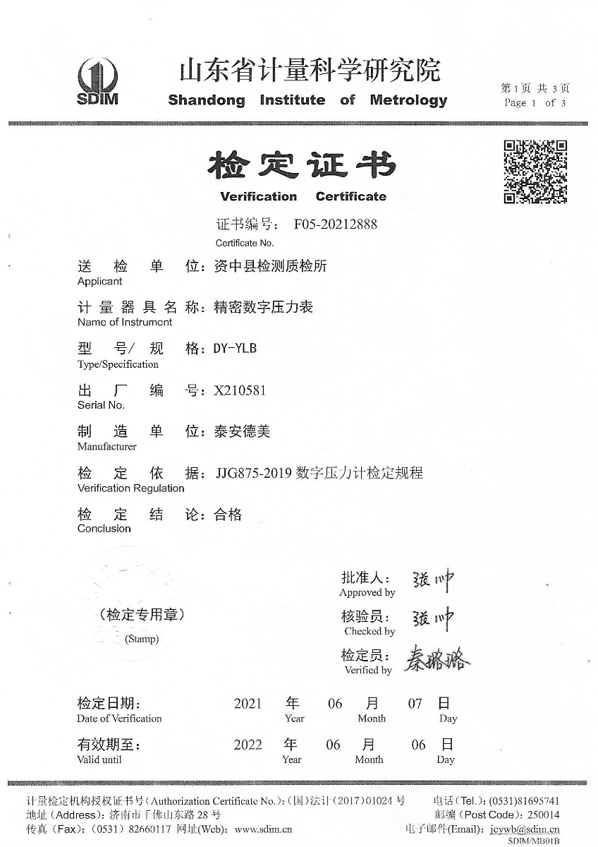 | 上一條:南昌計(jì)量檢定站-數(shù)字壓力校驗(yàn)儀 | 下一條:中溫面源黑體爐-校準(zhǔn)證書 |