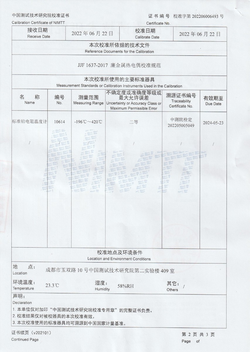 | 上一條:四川新川航空儀器有限責(zé)任公司-S分度補(bǔ)償導(dǎo)線 | 下一條:高精度制冷恒溫槽(-80~100℃)校準(zhǔn)證書 |