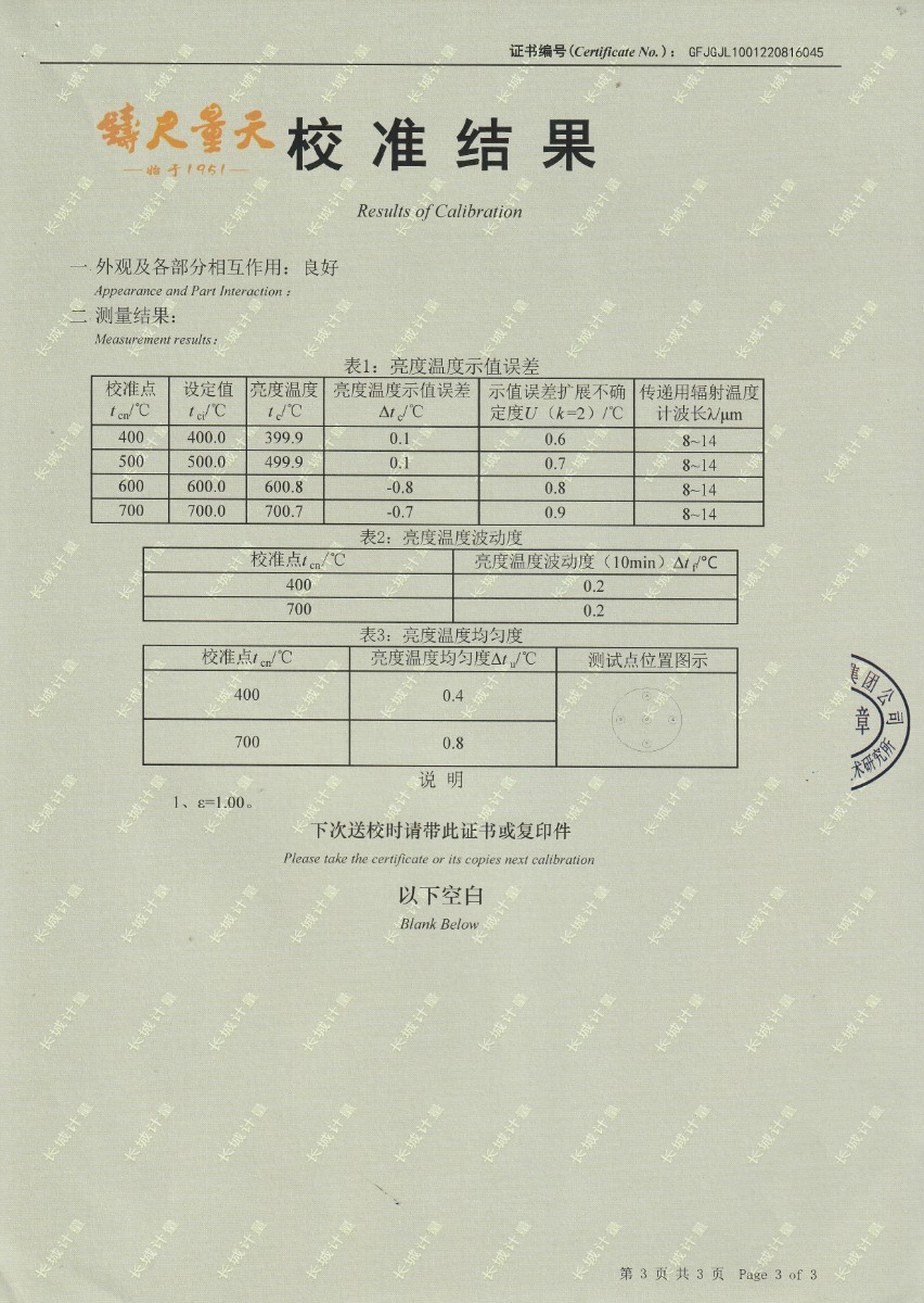 | 上一條:中國科學(xué)院長春光學(xué)精密機械與物理研究所-黑體爐DY-HT2-11 | 下一條:高精度制冷恒溫槽(-80~100℃)校準證書 |