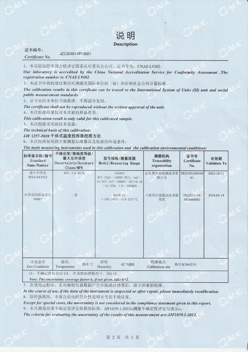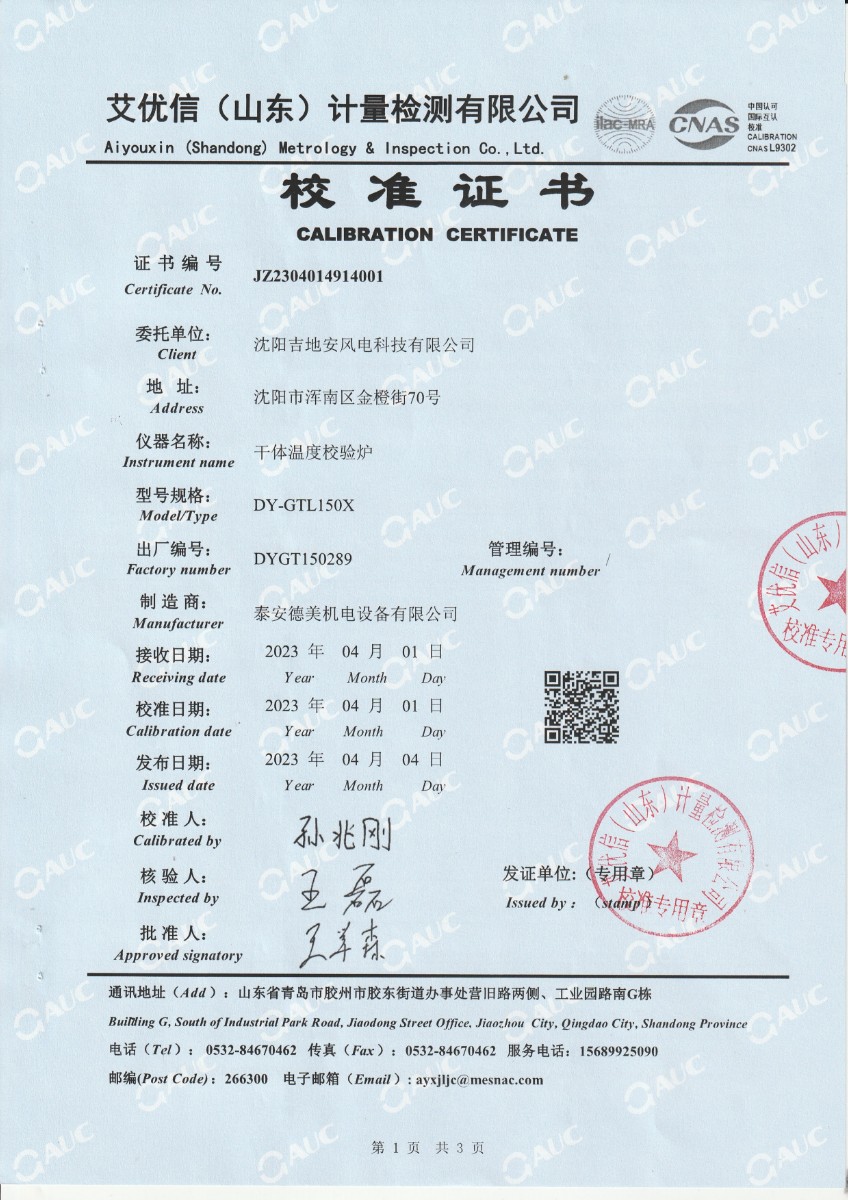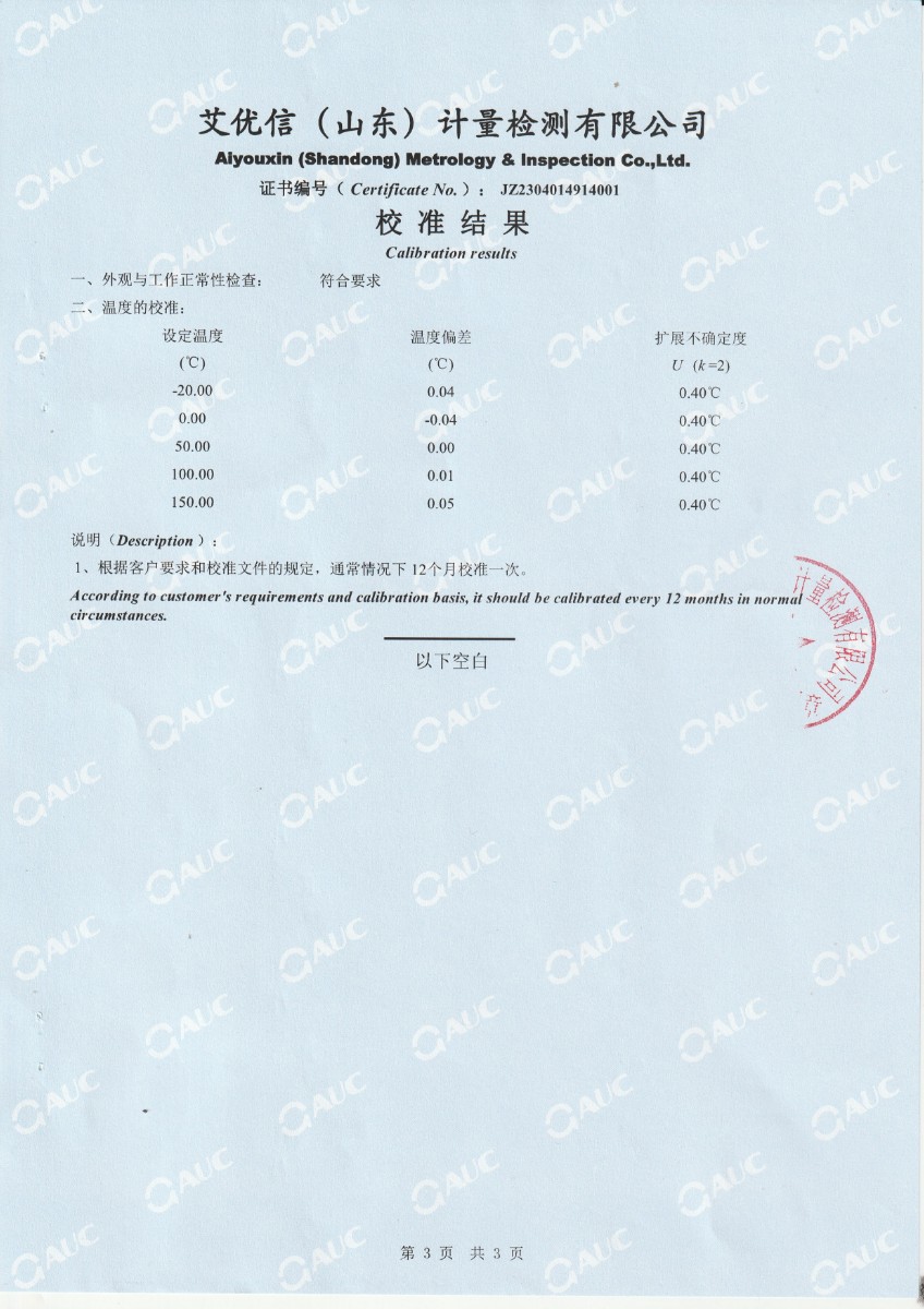 | 上一條:開封光利高科實業(yè)有限責任公司送變電公司 變壓器溫度計校驗裝置 校準證書(2) | 下一條:高精度制冷恒溫槽(-80~100℃)校準證書 |