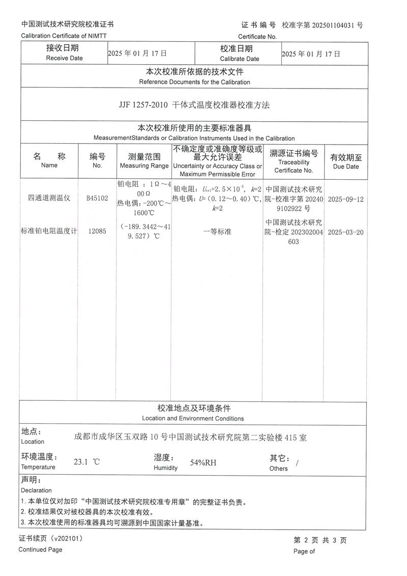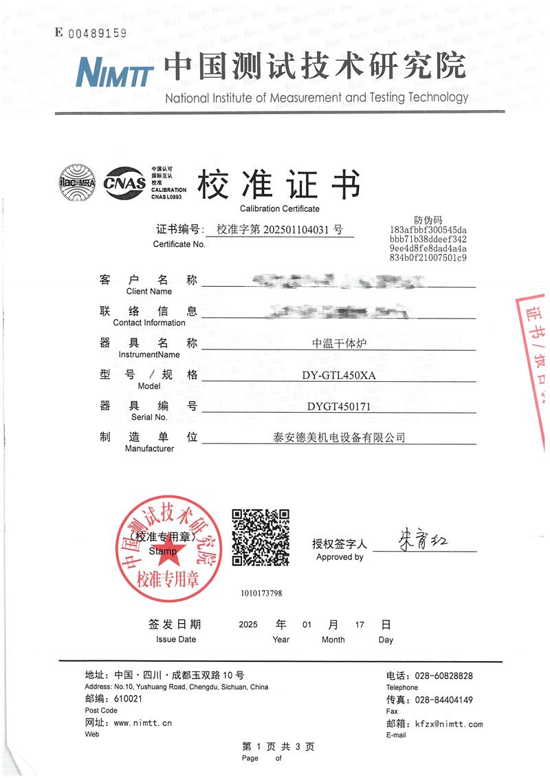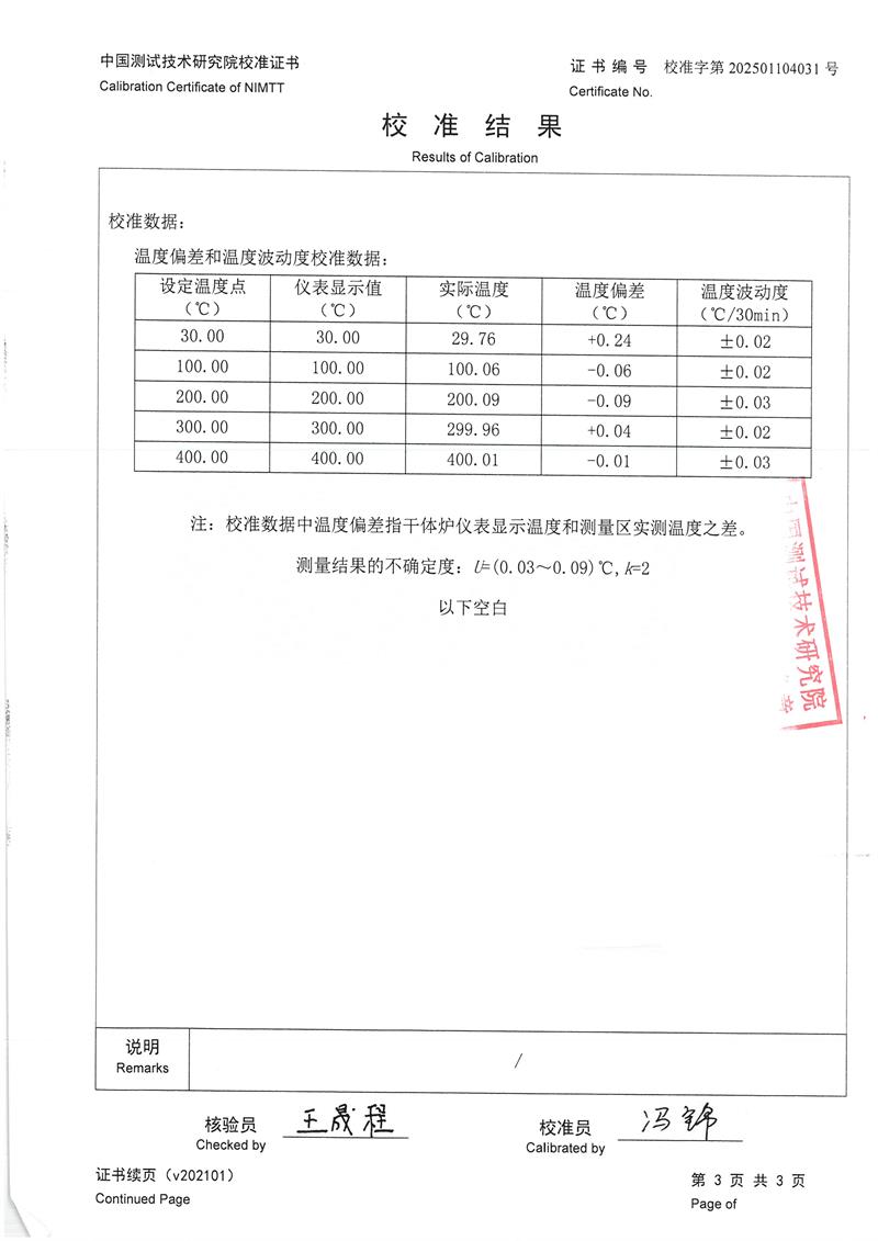 | 上一條:高溫干體爐(300-1200℃)校準(zhǔn)證書(shū) | 下一條:中溫面源黑體爐-校準(zhǔn)證書(shū) |