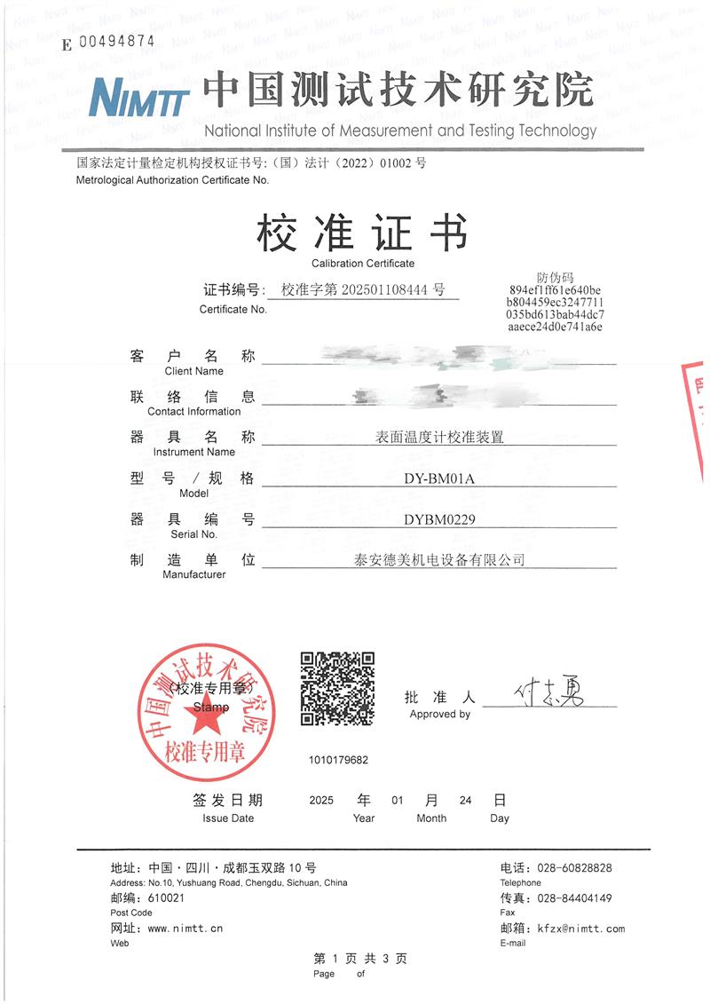 表面溫度計(jì)校準(zhǔn)裝置-校準(zhǔn)證書 2025-2-14 本文被閱讀 6349 次