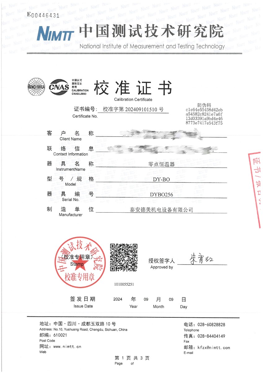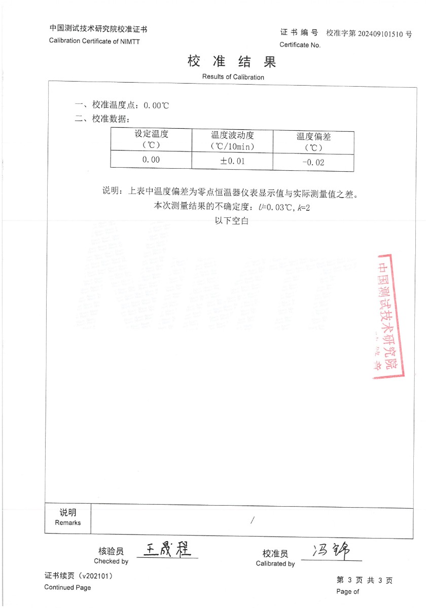 零點恒溫器校準(zhǔn)證書 2024-9-11 本文被閱讀 7258 次