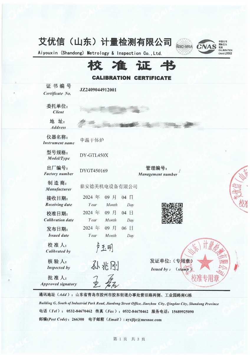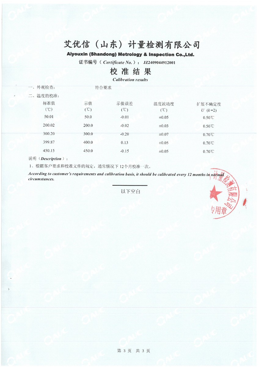 中溫干體(50~450℃)校準(zhǔn)證書(shū) 2024-9-18 本文被閱讀 7112 次